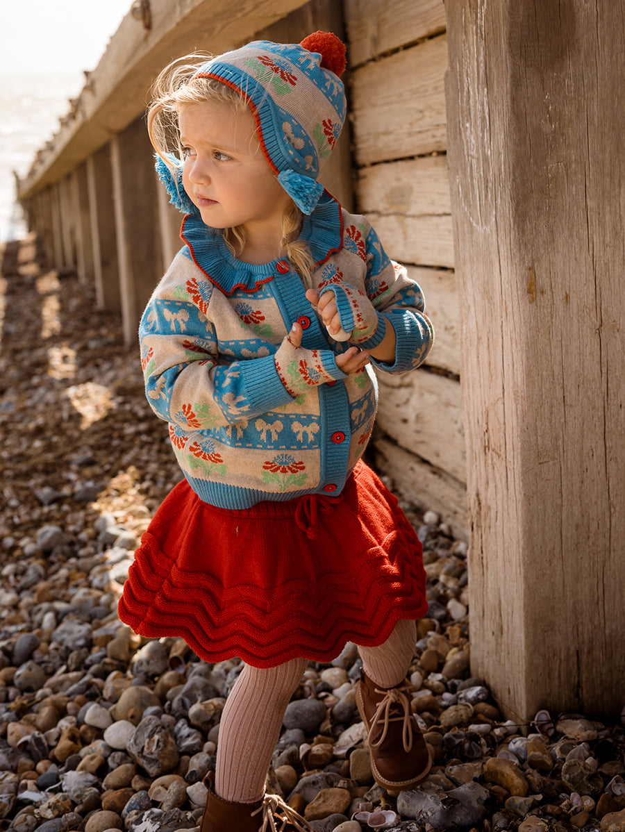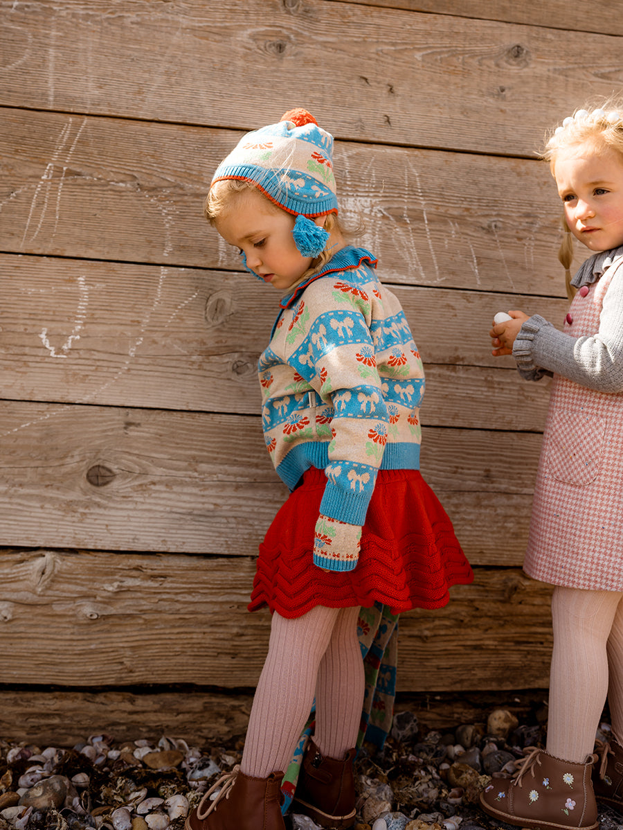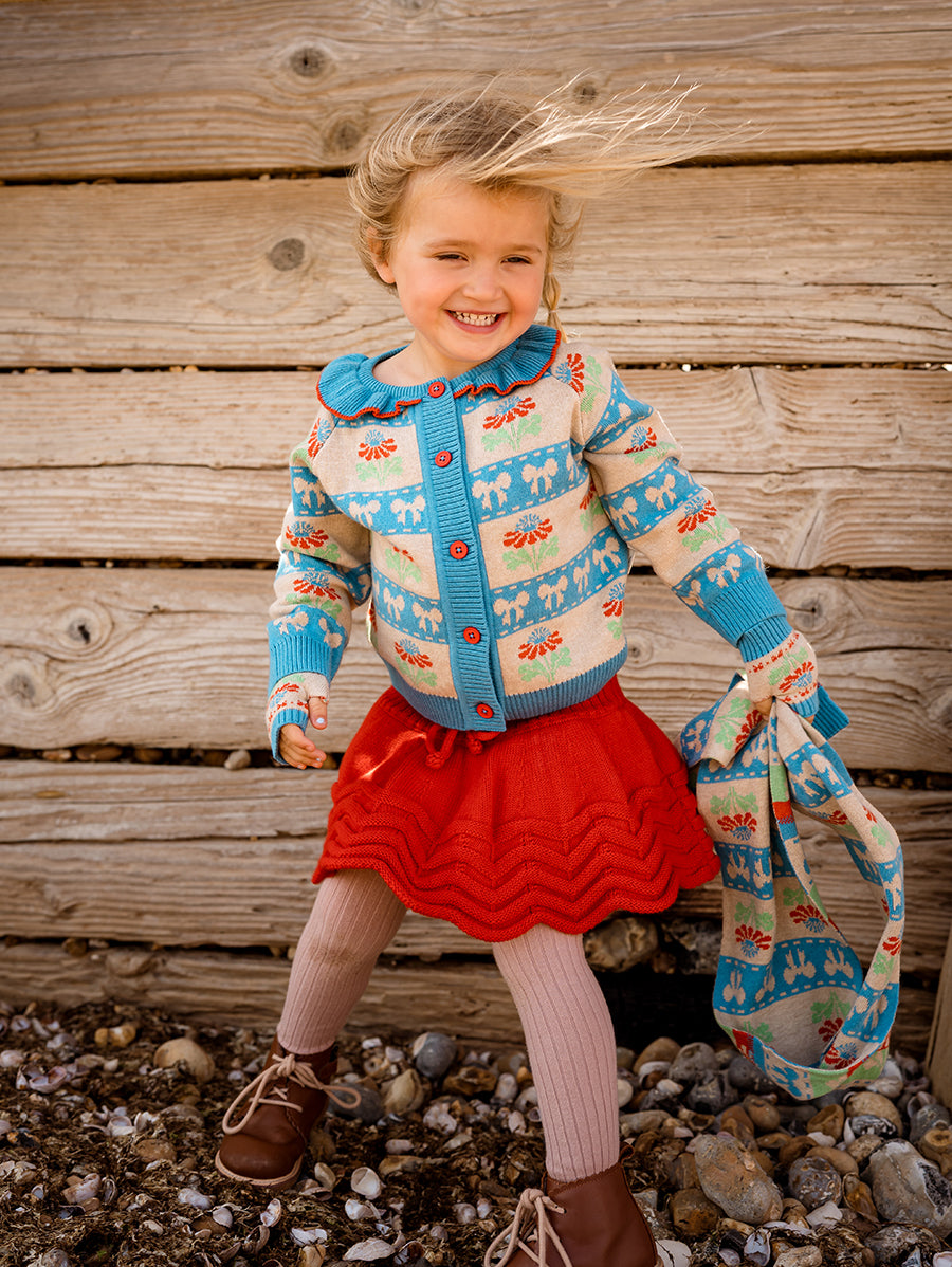 Crafted from the finest natural yarns - plush cashmere, extra-fine merino wool, and soft cotton - our knitwear wraps little ones in breathable warmth and everyday comfort. From timeless silhouettes to our signature Fair Isle patterns, each piece is designed and knitted in-house.