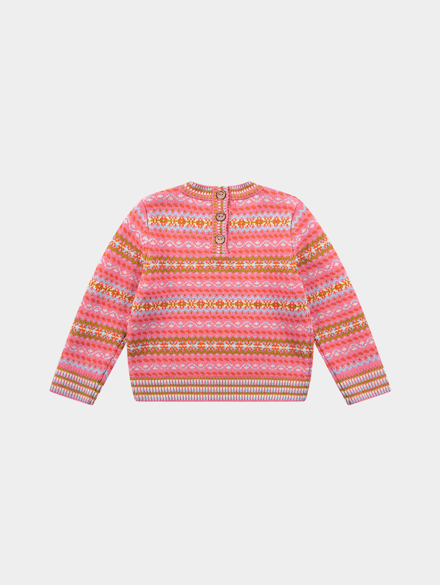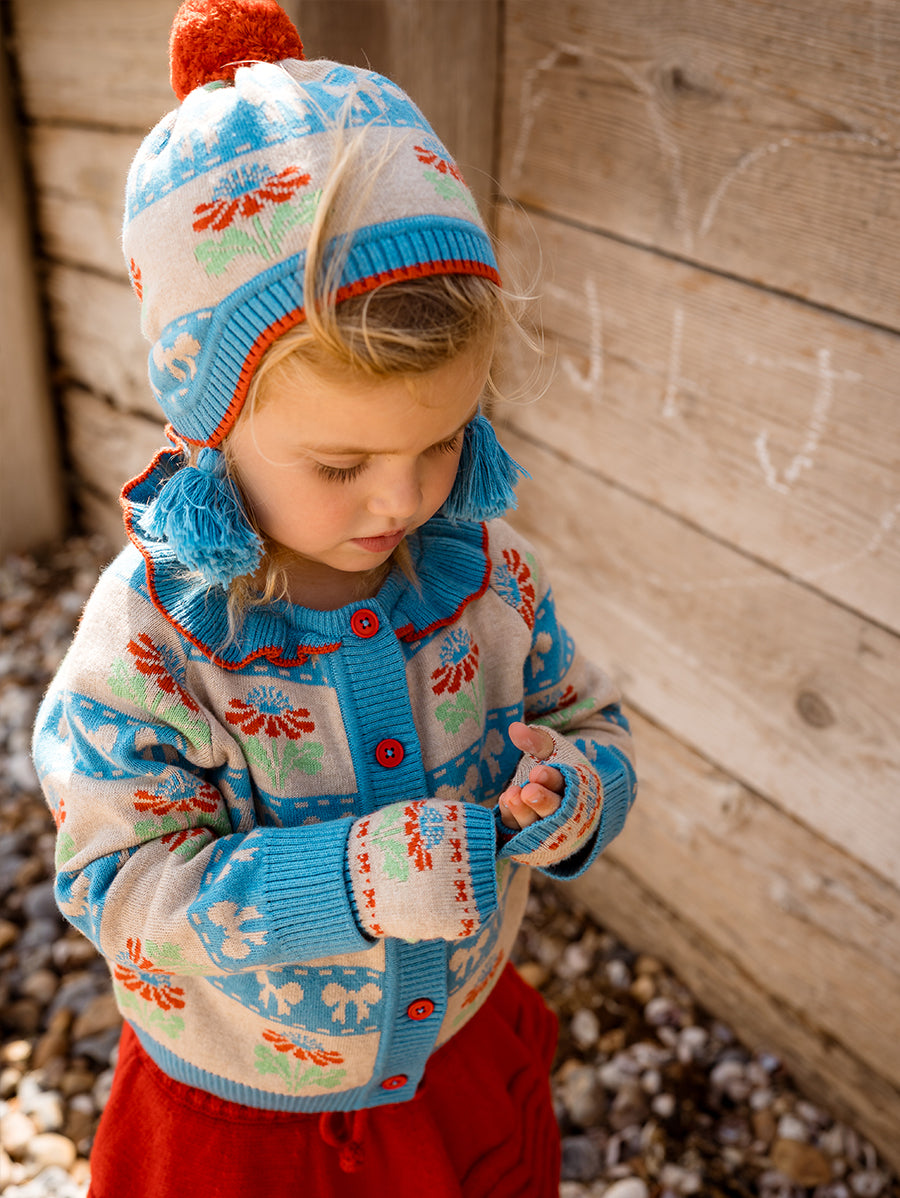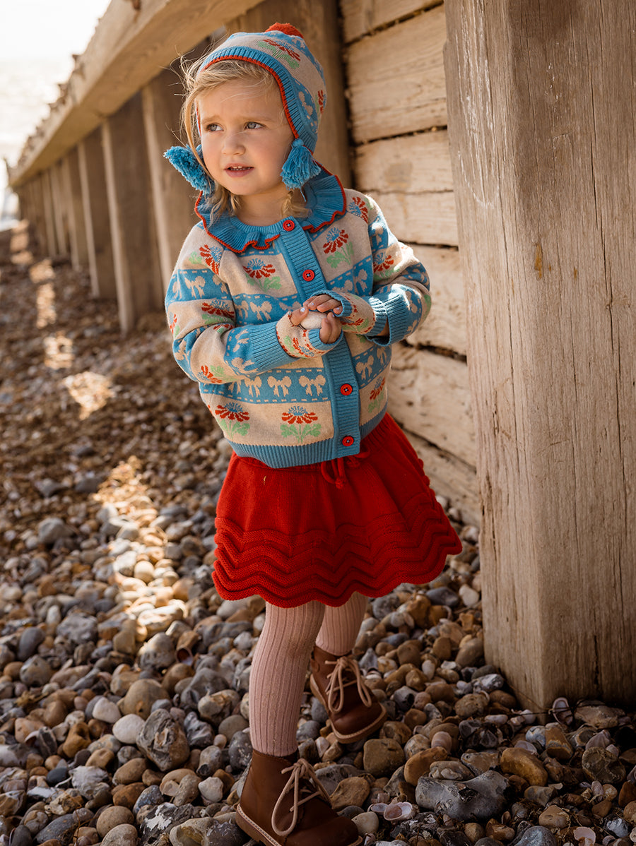Crafted from the finest natural yarns - plush cashmere, extra-fine merino wool, and soft cotton - our knitwear wraps little ones in breathable warmth and everyday comfort. From timeless silhouettes to our signature Fair Isle patterns, each piece is designed and knitted in-house.