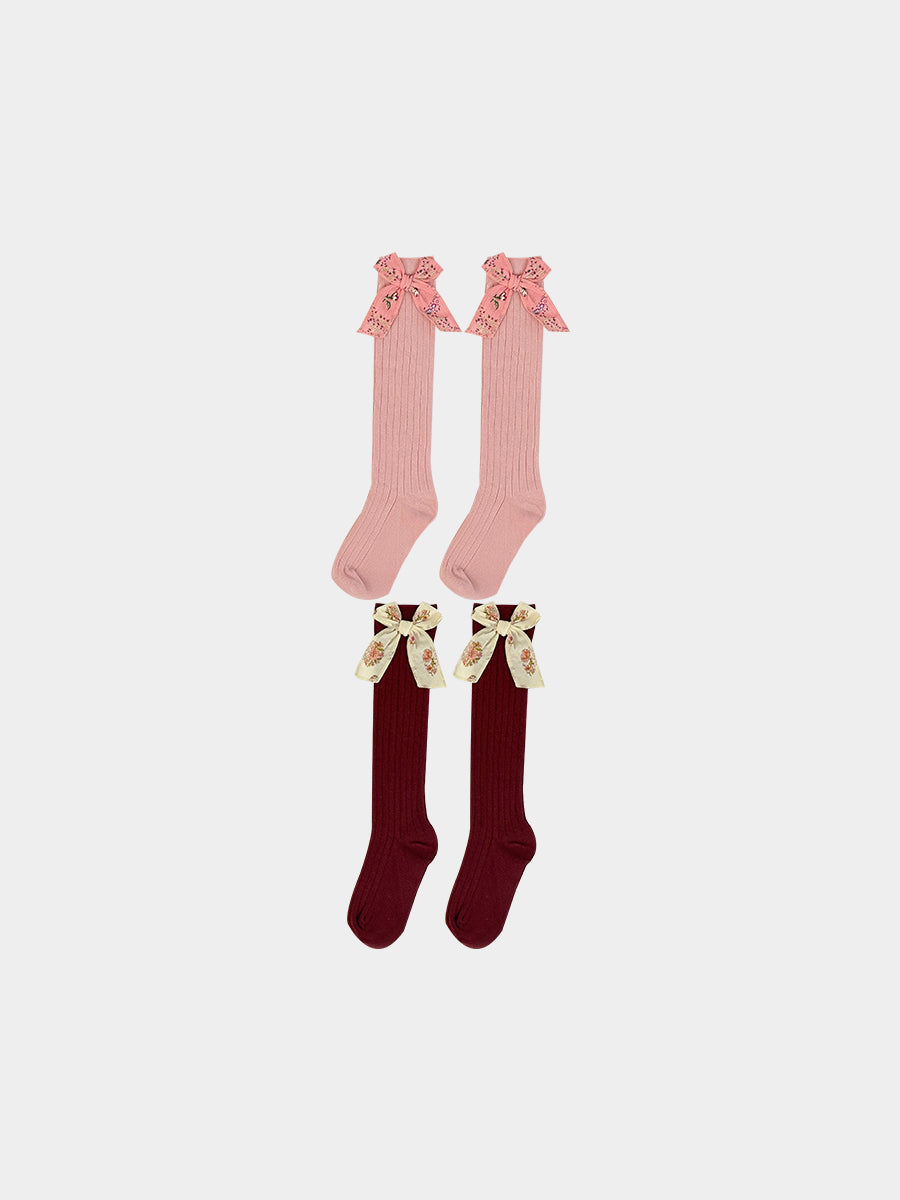 Noelle Bow Socks, Misty Pink & Pomegranate Red