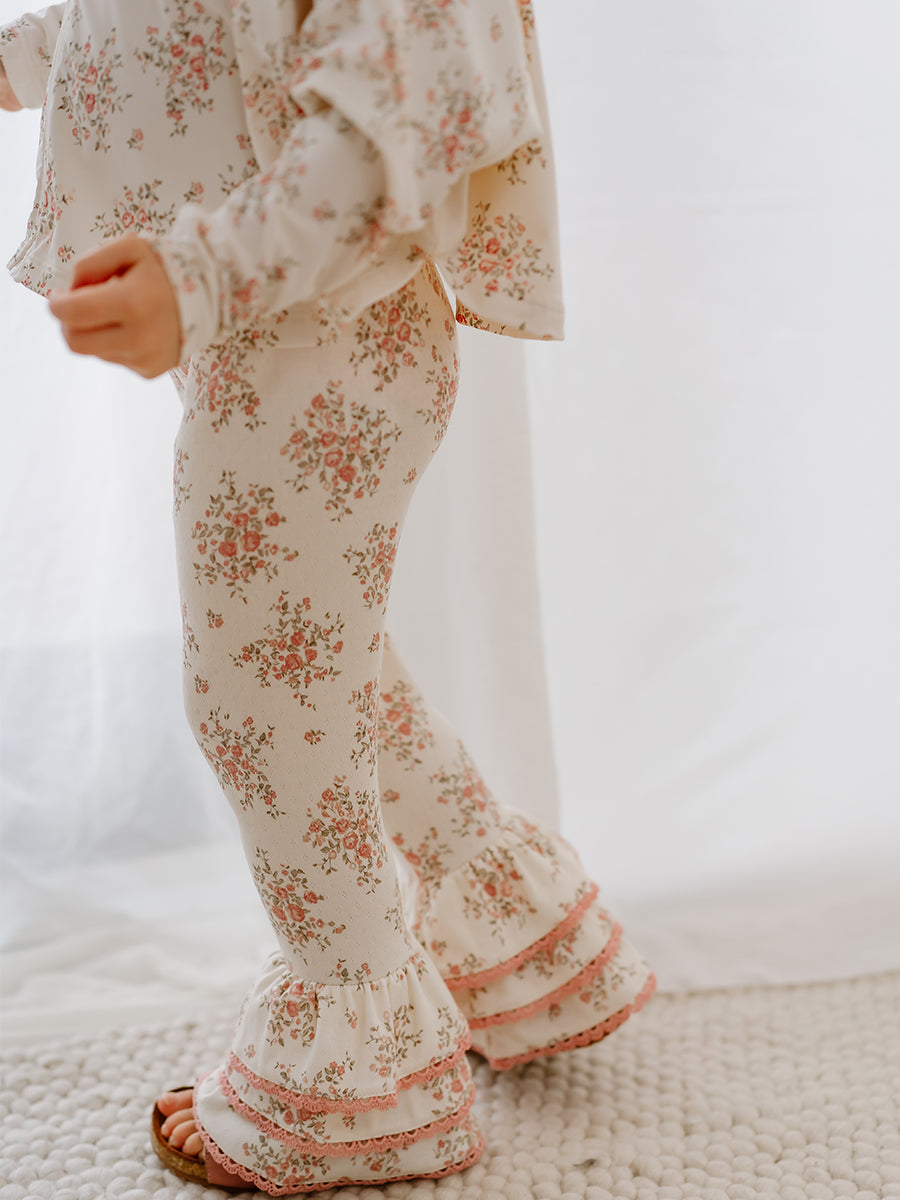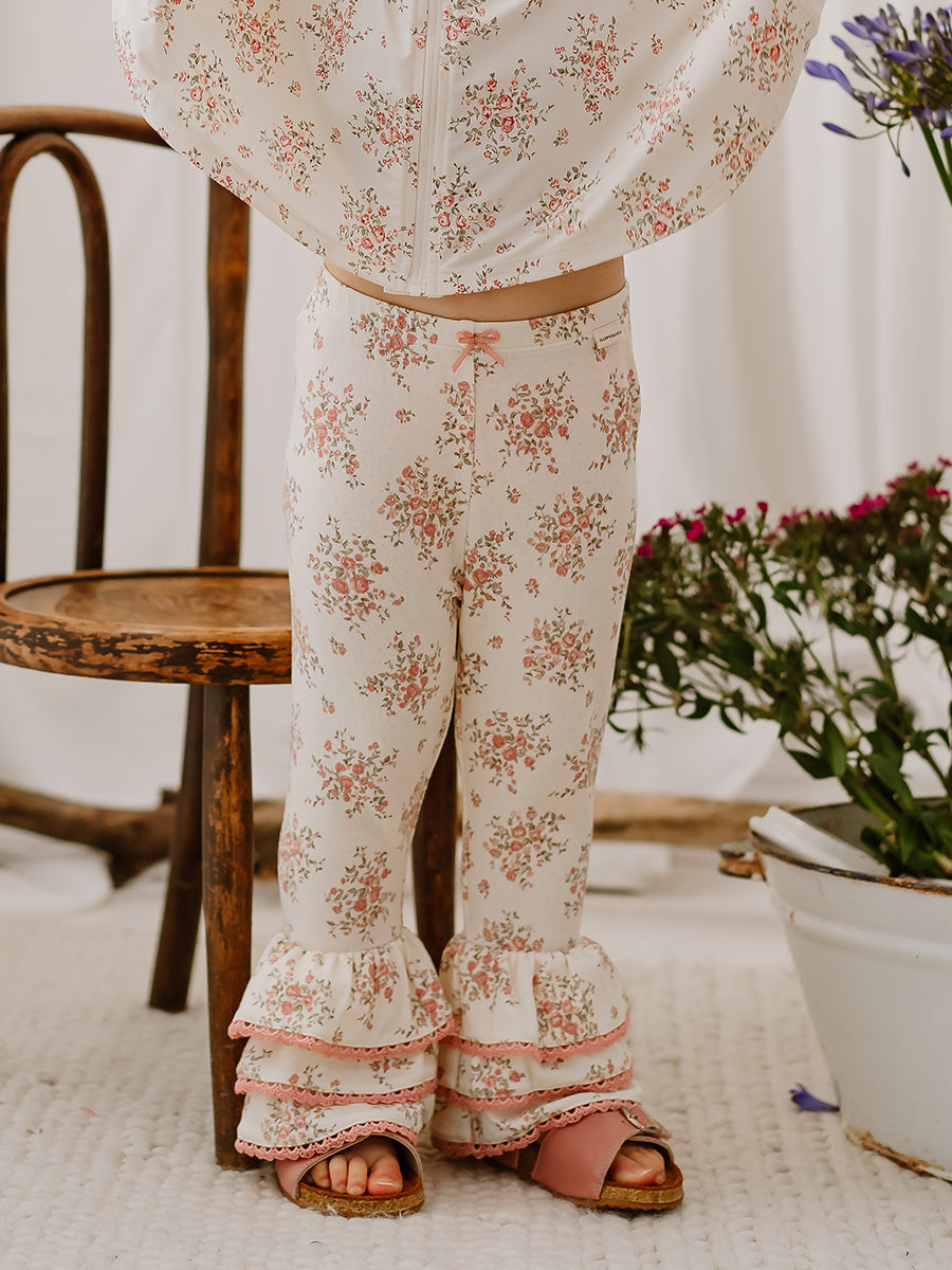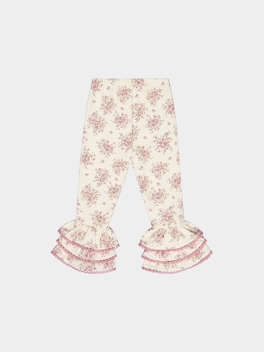Lincoln Ruffle Leggings, Rose Bouquet, White