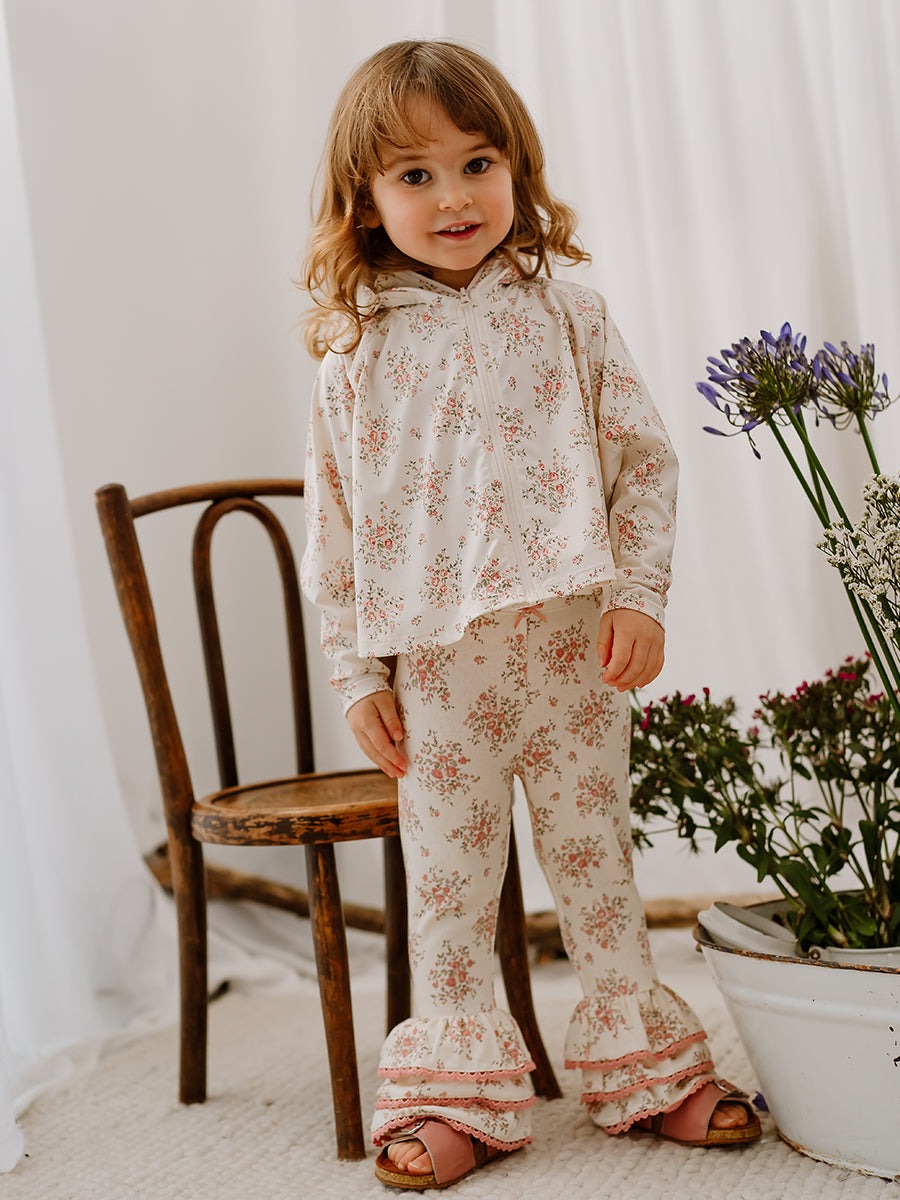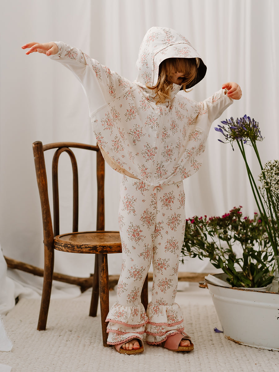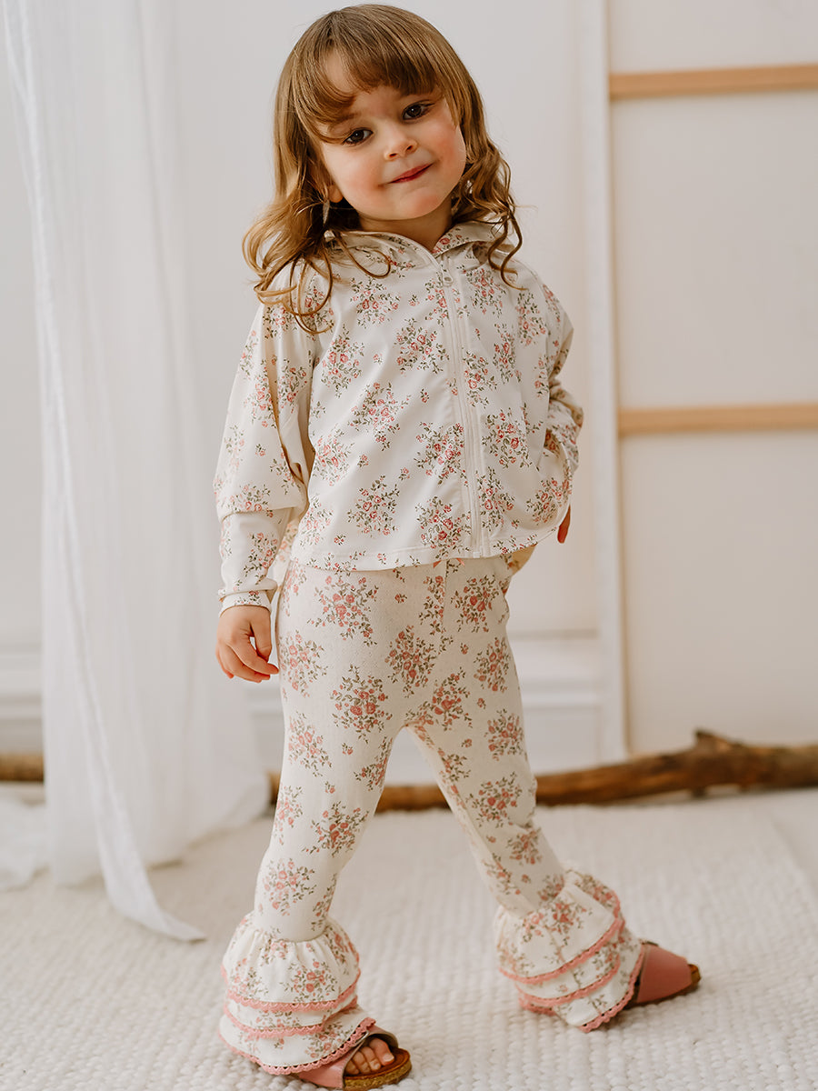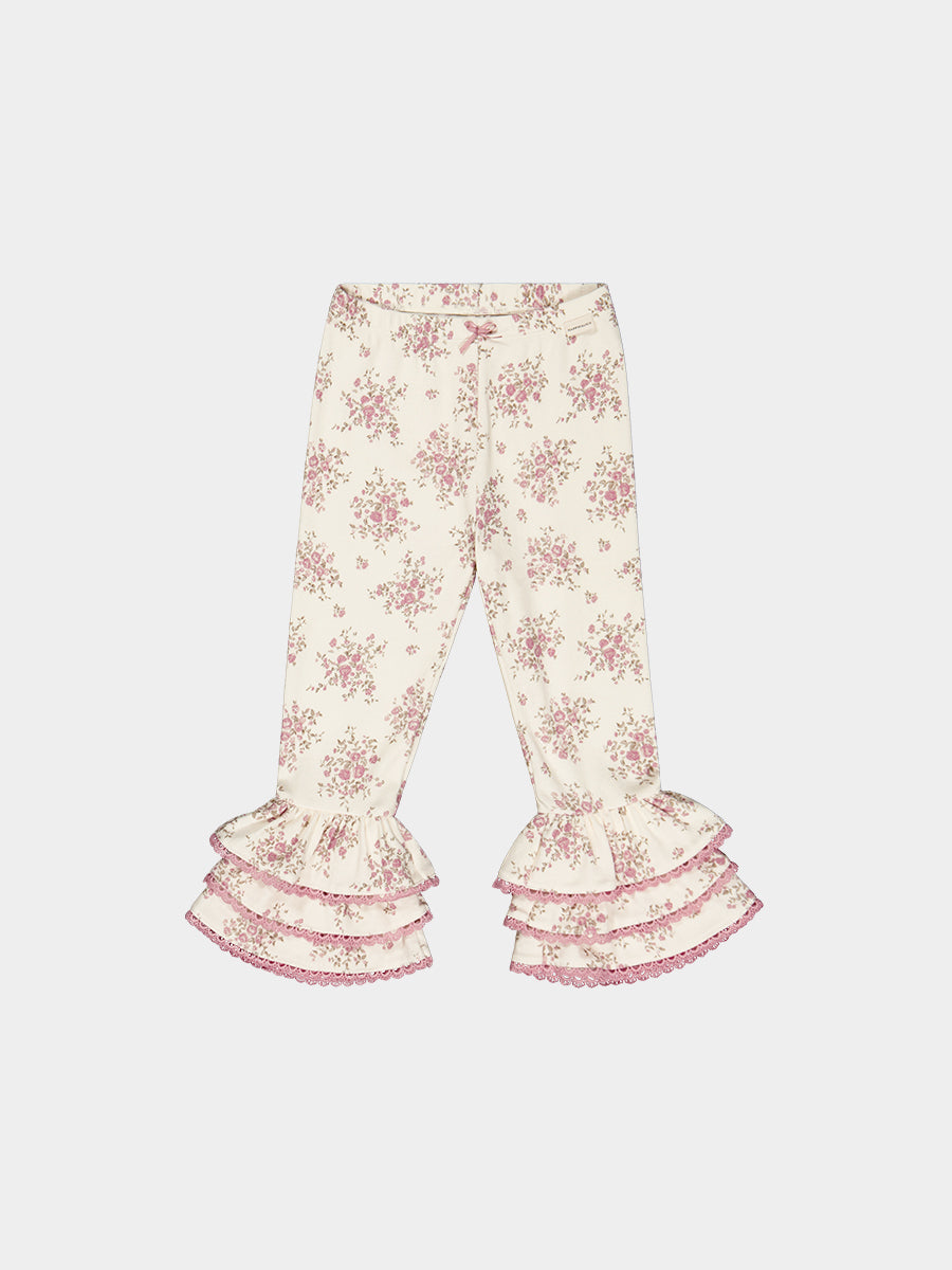 Lincoln Ruffle Leggings, Rose Bouquet, White