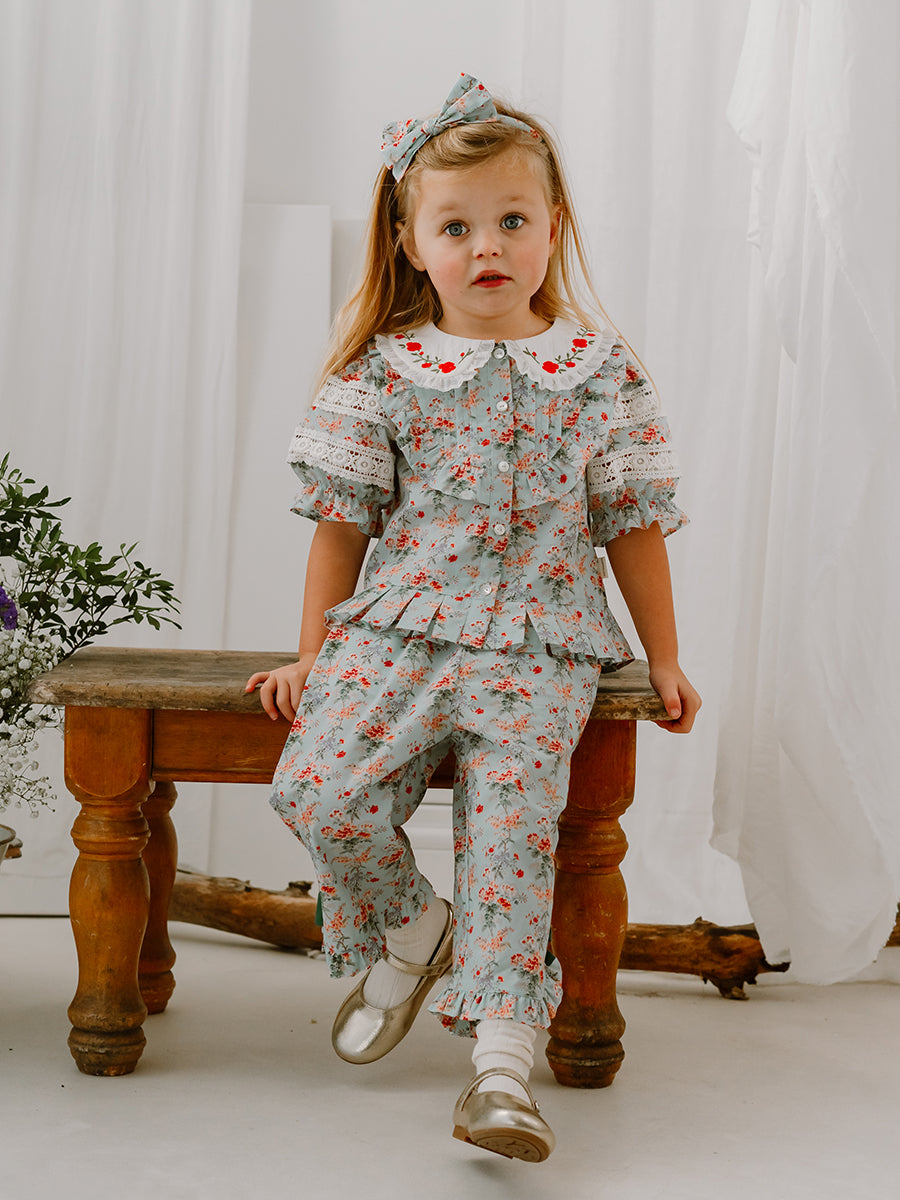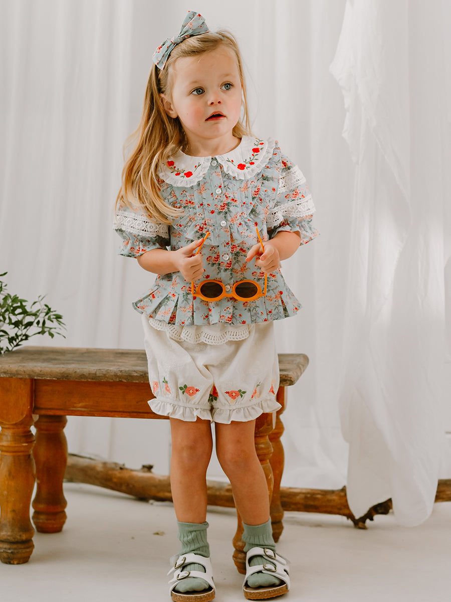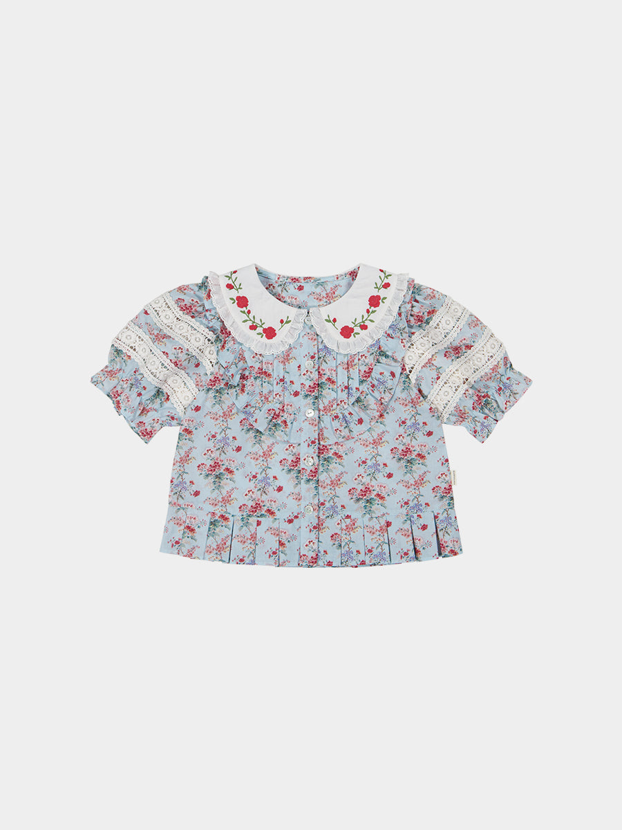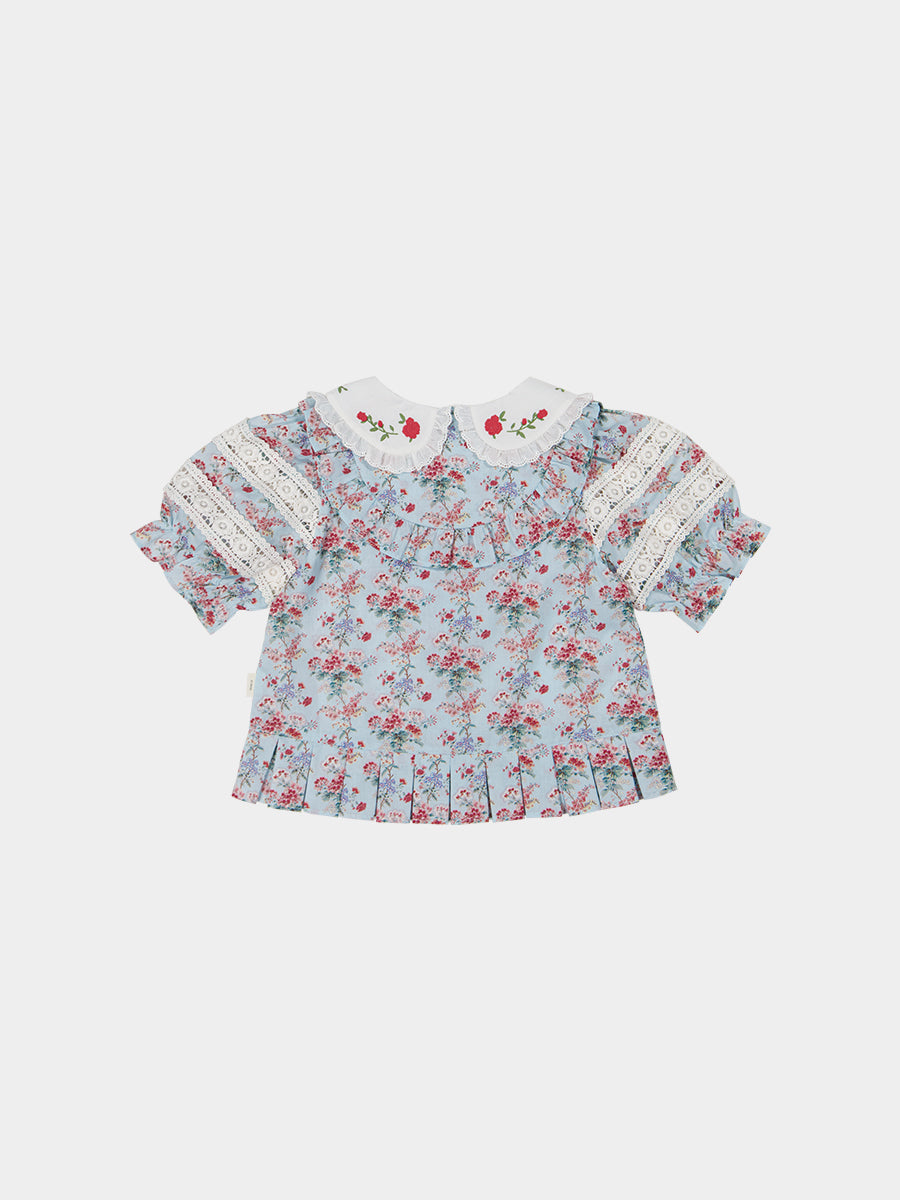 Segovia Embroidered Top, Luxemburg Garden, Blue