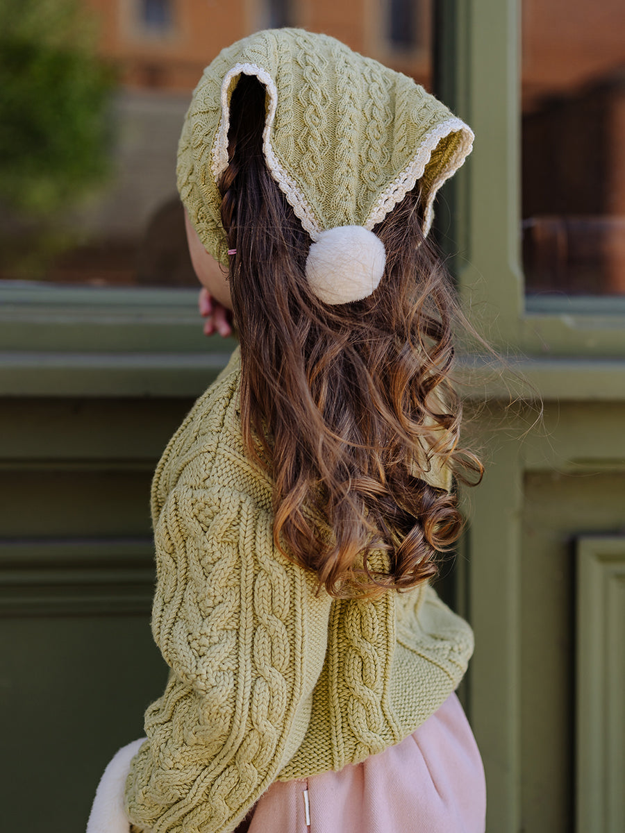 Lobelia Cable Knit Kerchief, Lime Green