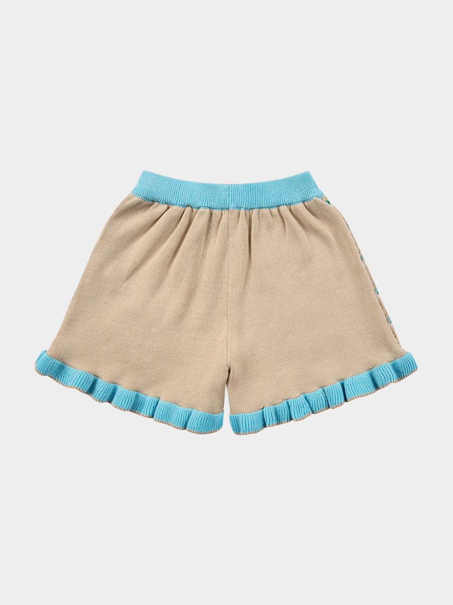 Strawberry Hand-Embroidered Knitted Pants, Crème Brulee