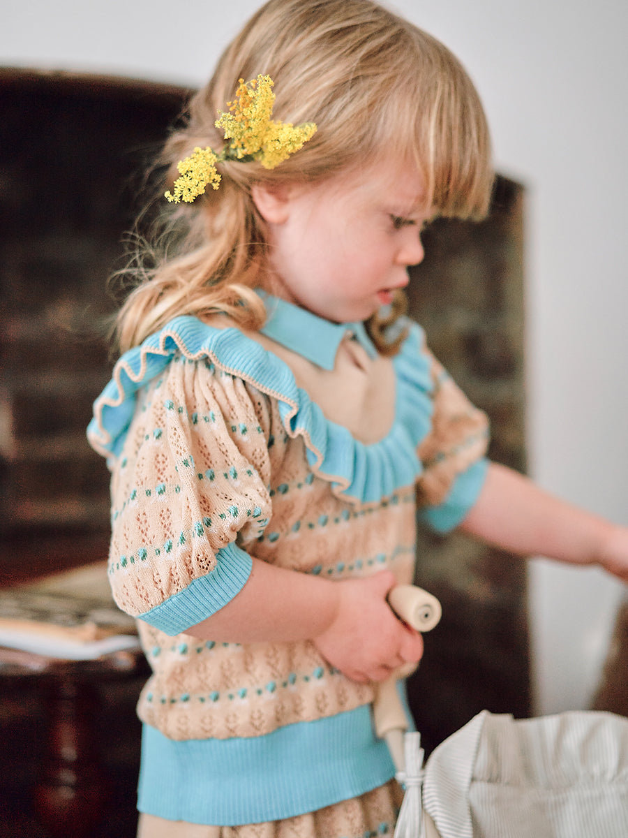 Jasmine Embroidered Knitted Collar, Ice Cream