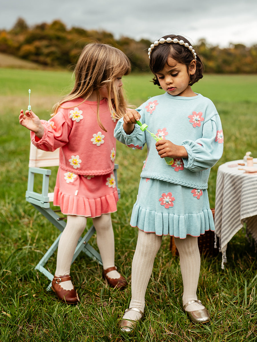 Kent Floral Knitted Skirt, Aqua Blue