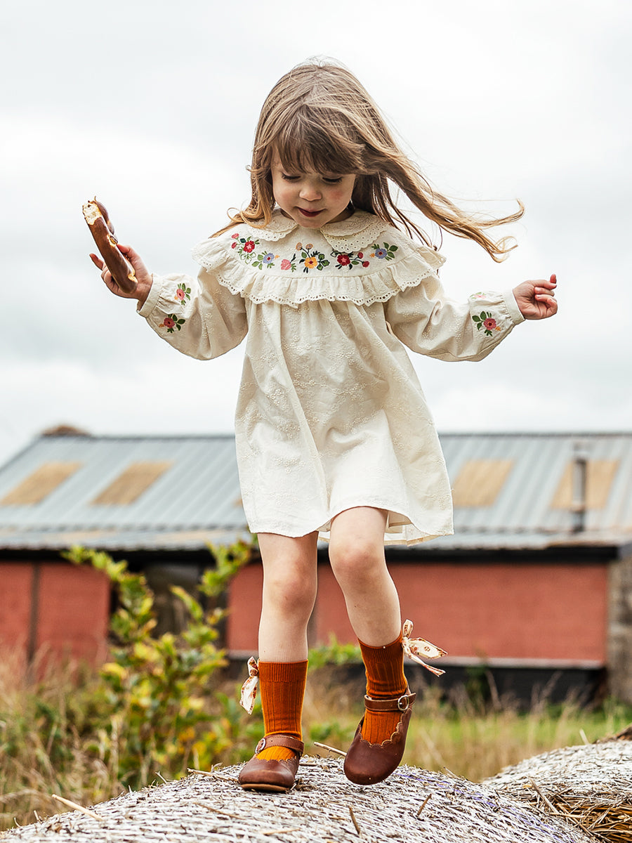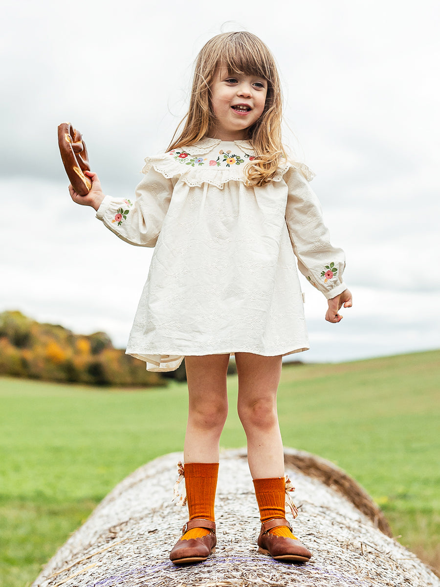 Falmouth Embroidered Dress, Almond White