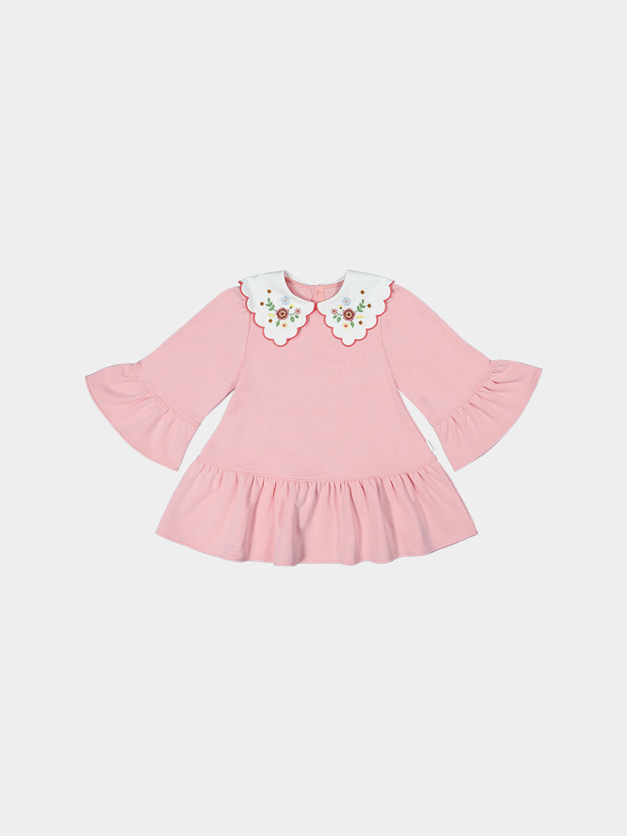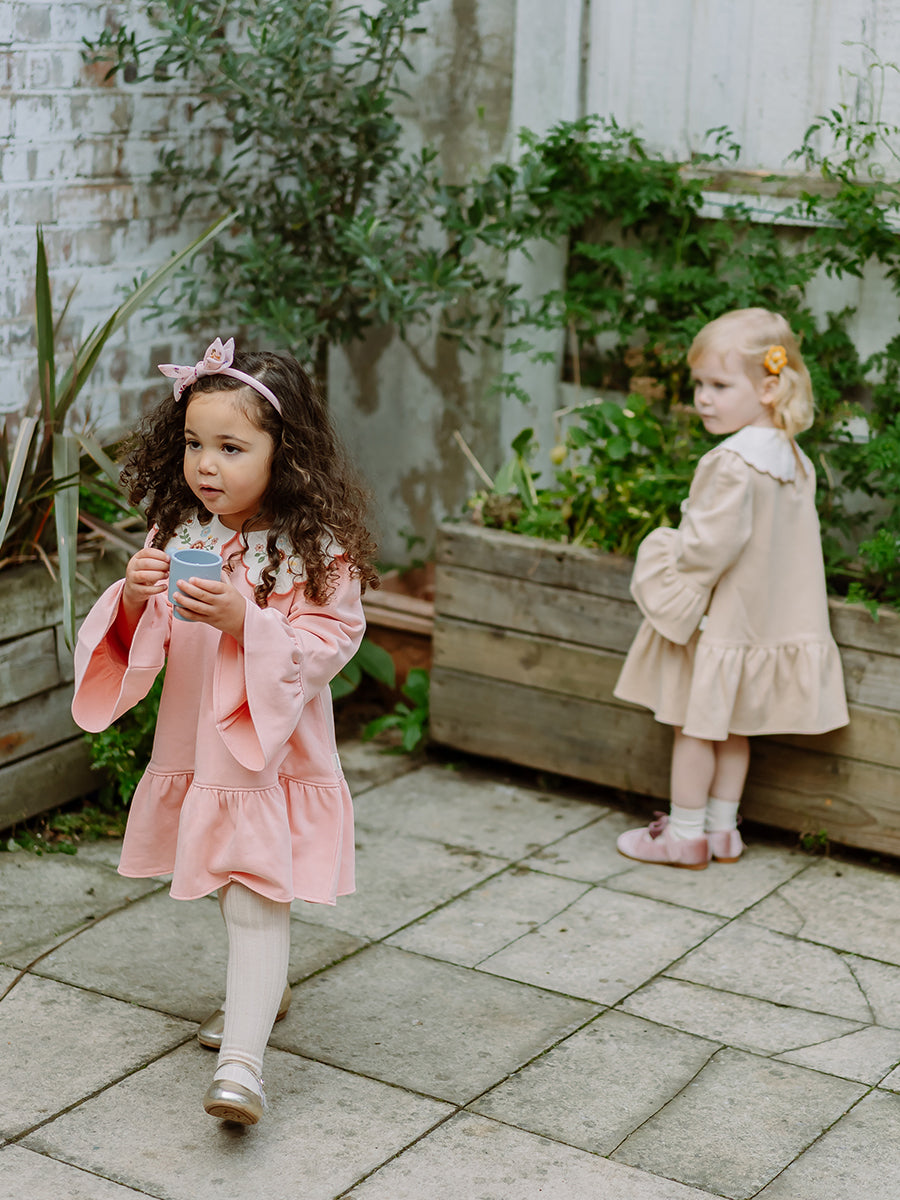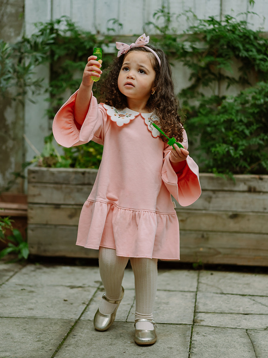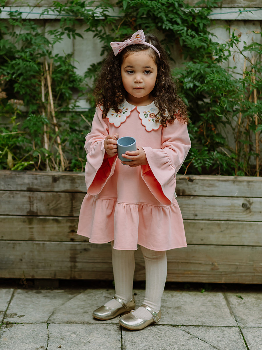 Carlisle Embroidered Jersey Dress, Almond Pink