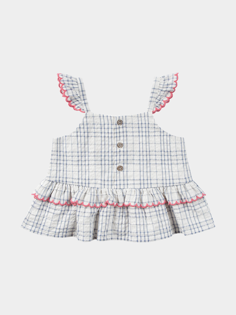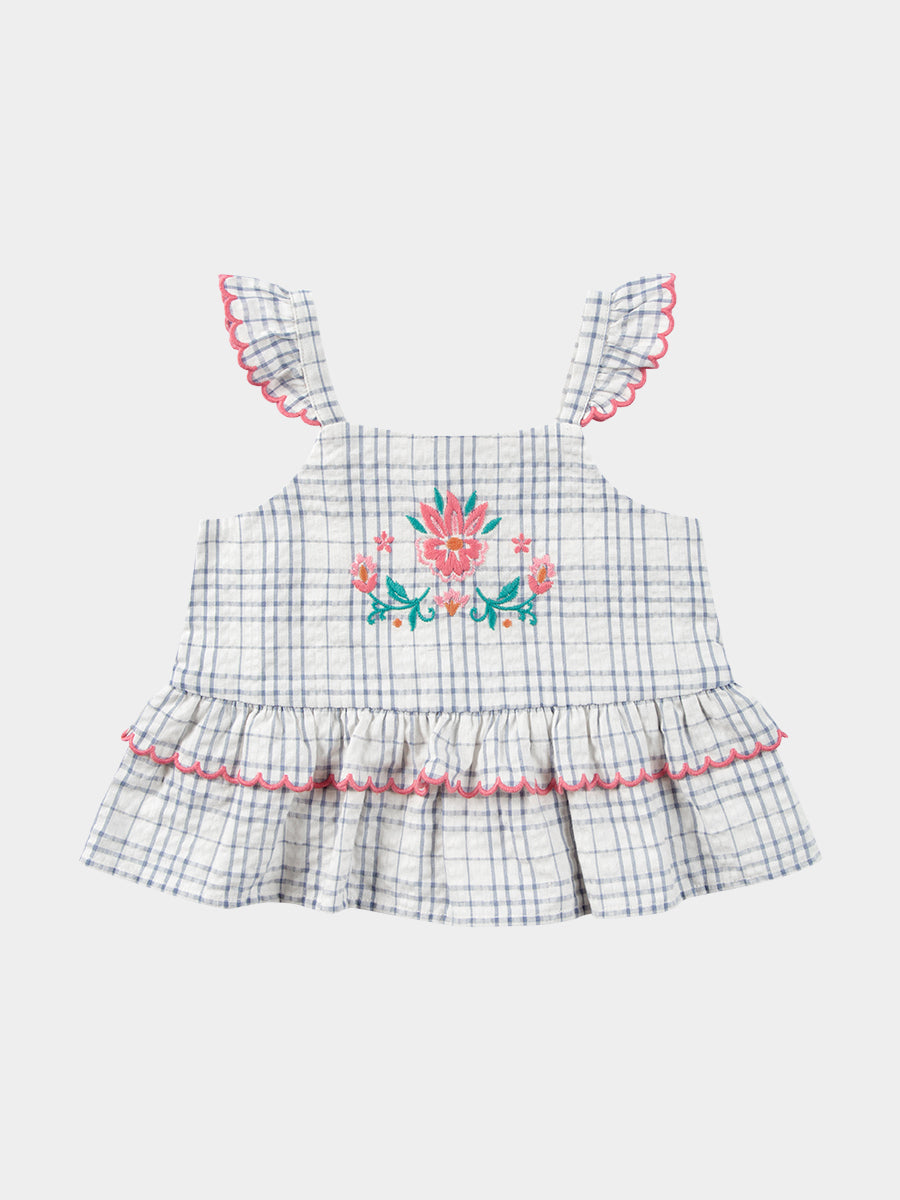 Amrita Embroidered Top, Blue Check