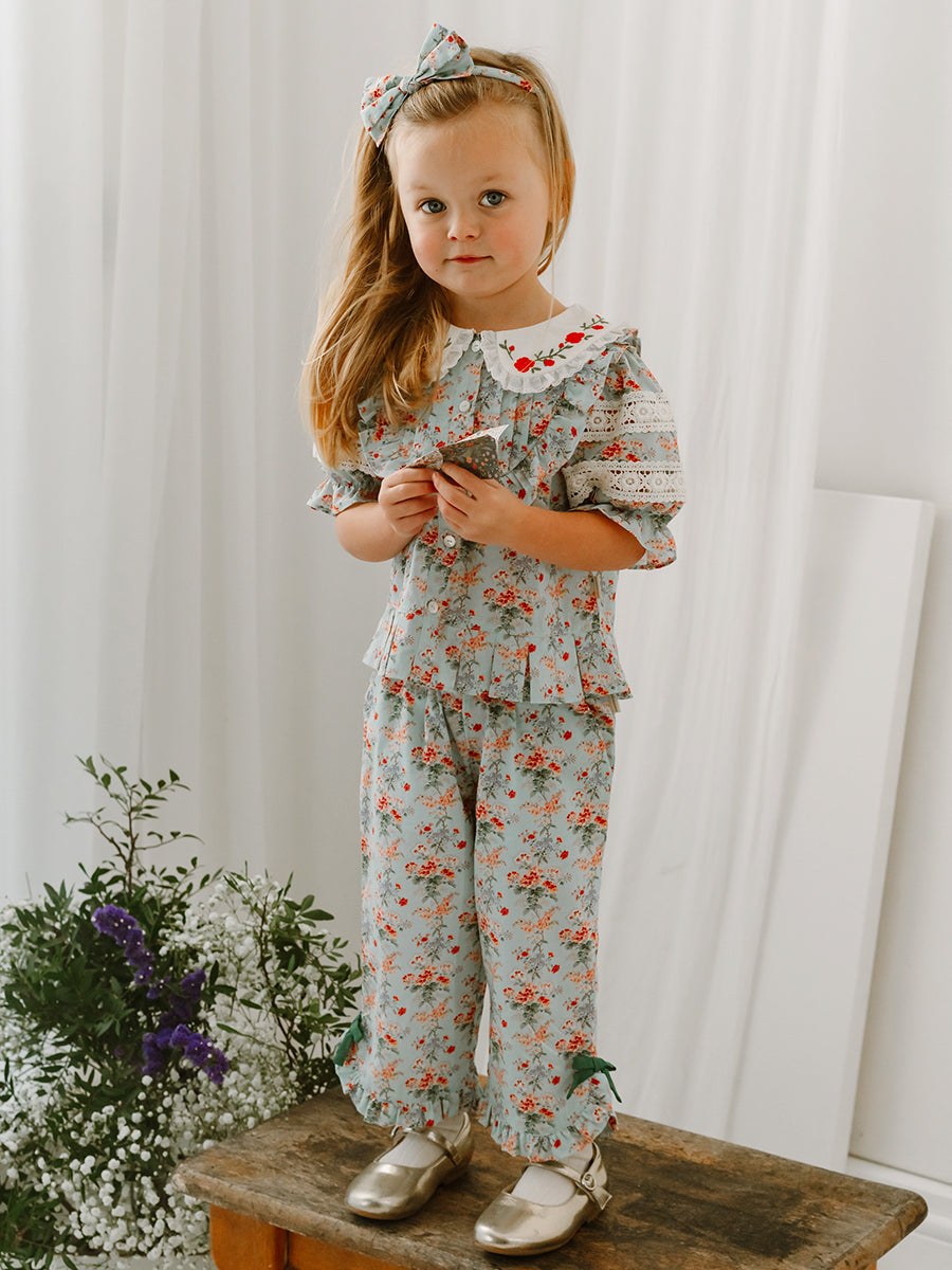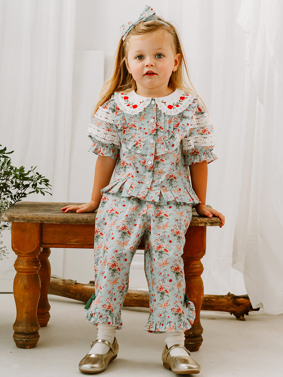 I adore the Quinn ladybird romper, the khaki ladybird embroidered trousers are also a favourite. And the Lindsey hand-smocking blouse – the romantic frills are adorable and such a pretty print.