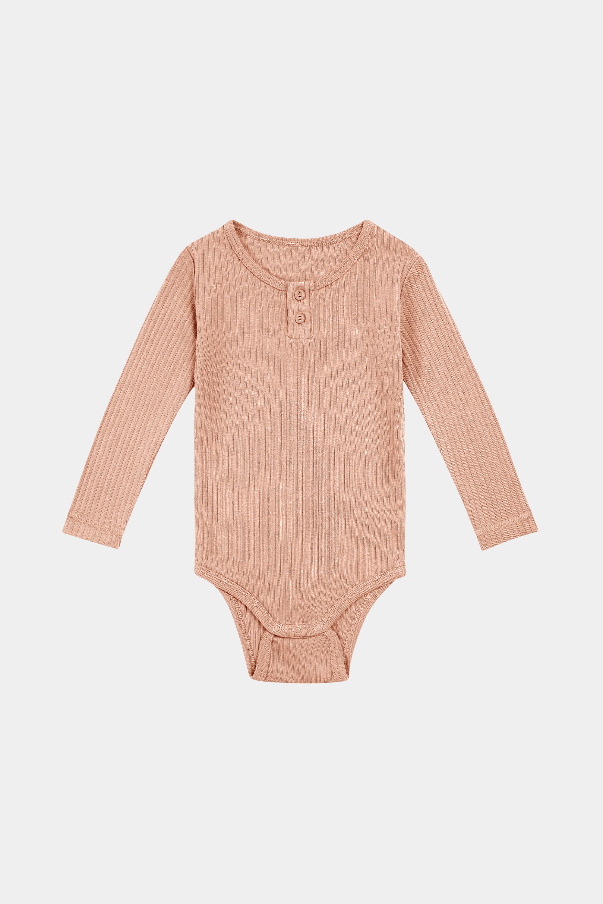 Organic Essential Long-Sleeve Bodysuit, Peach