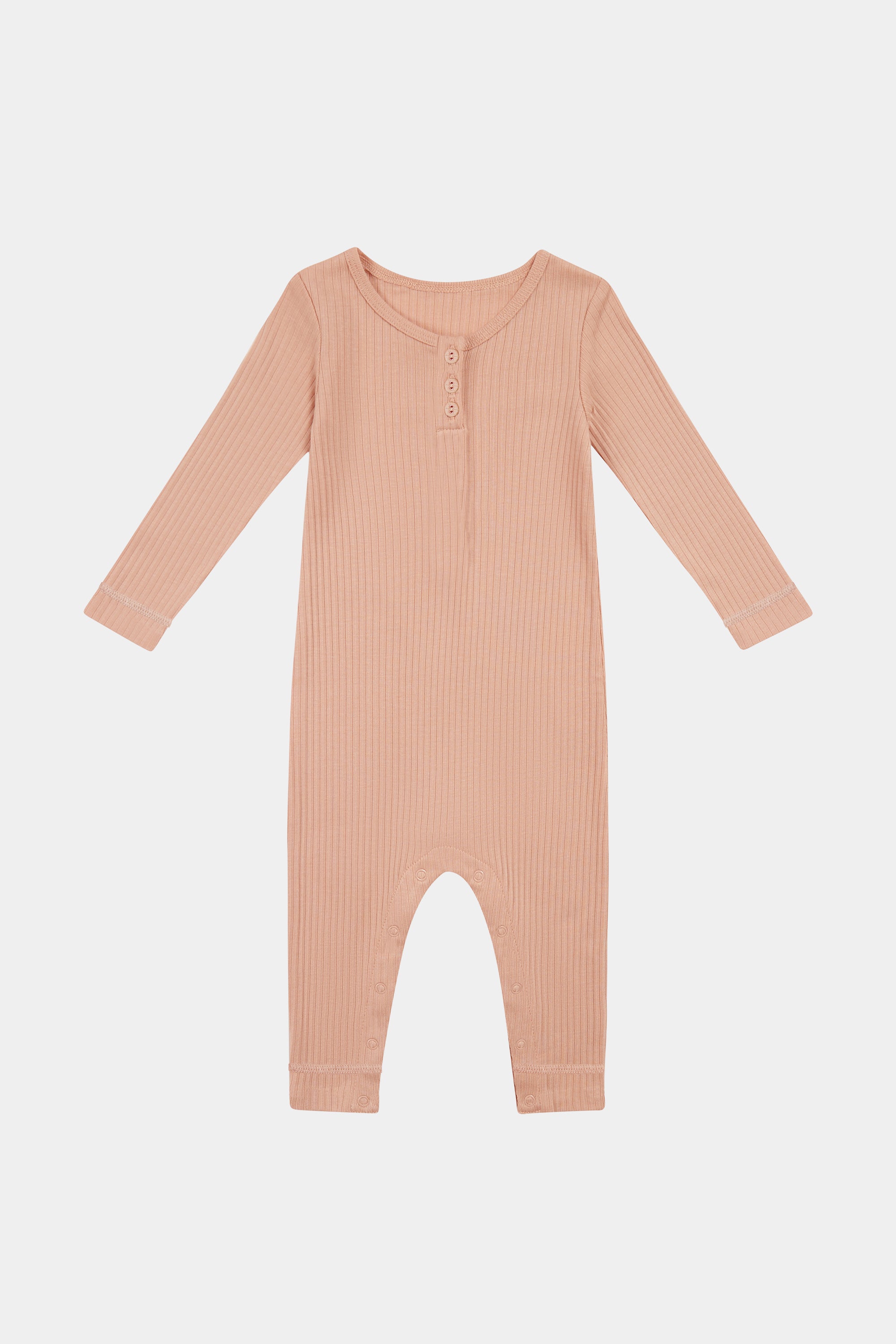 Organic Essential Long-Sleeve Sleepsuit, Peach