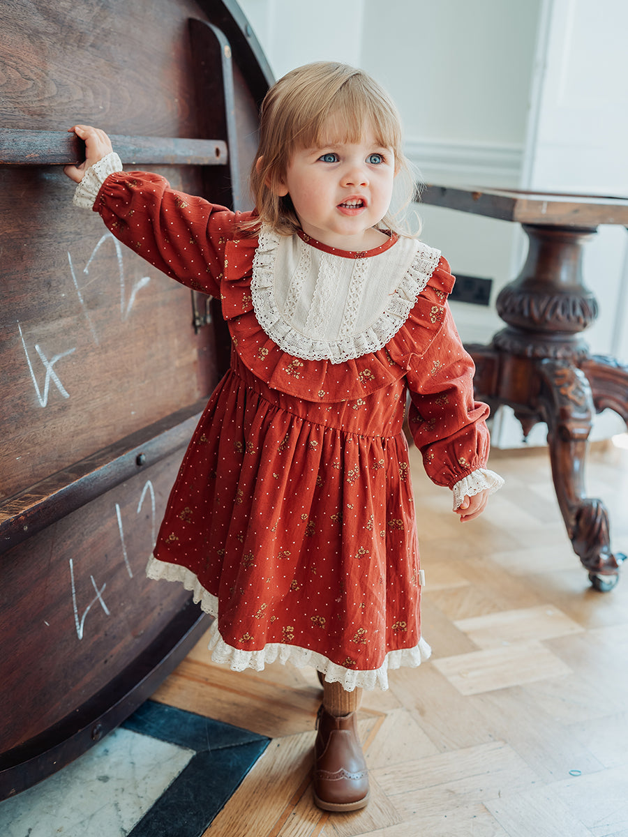 Jacqueline Dress, Wildflower Polka, Burgundy