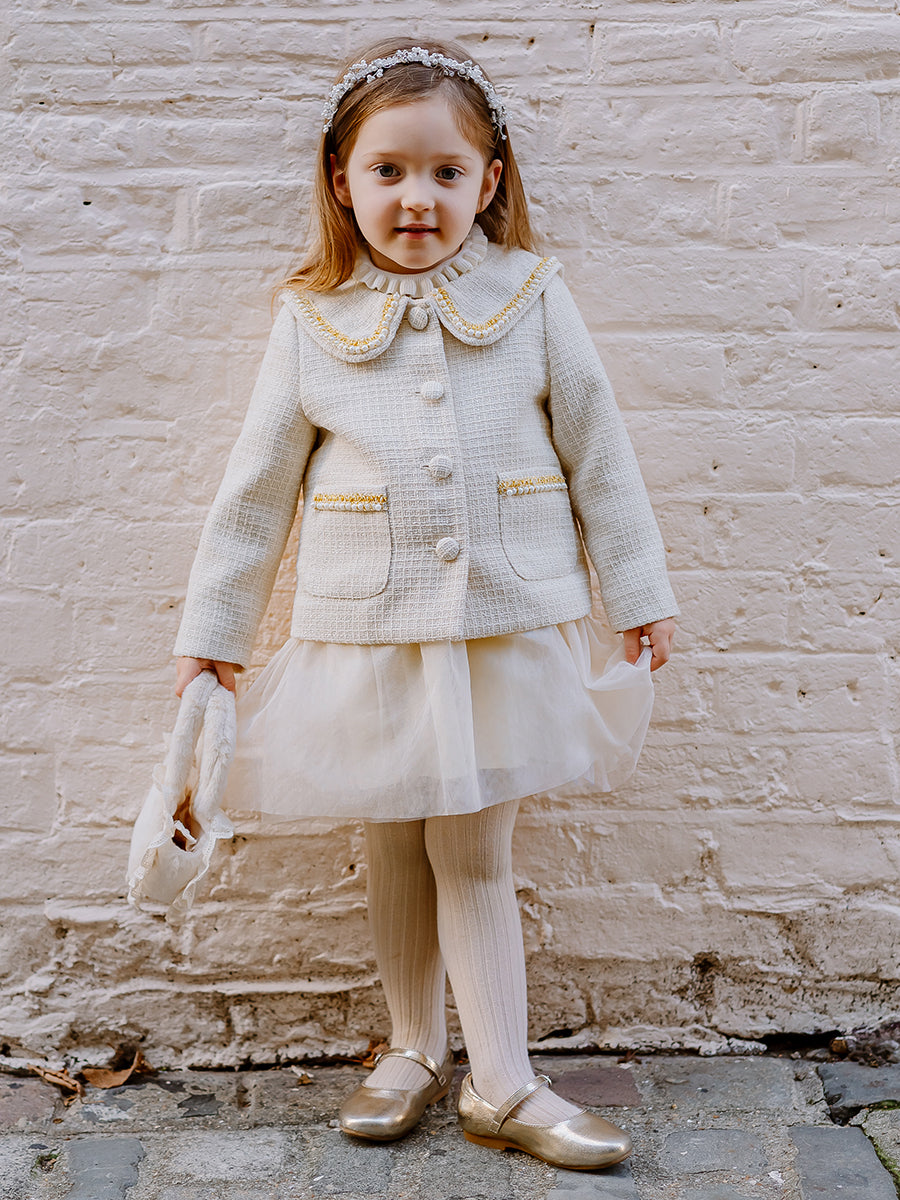 Sage Knitted Collar Quilted Down Jacket, Ivory White