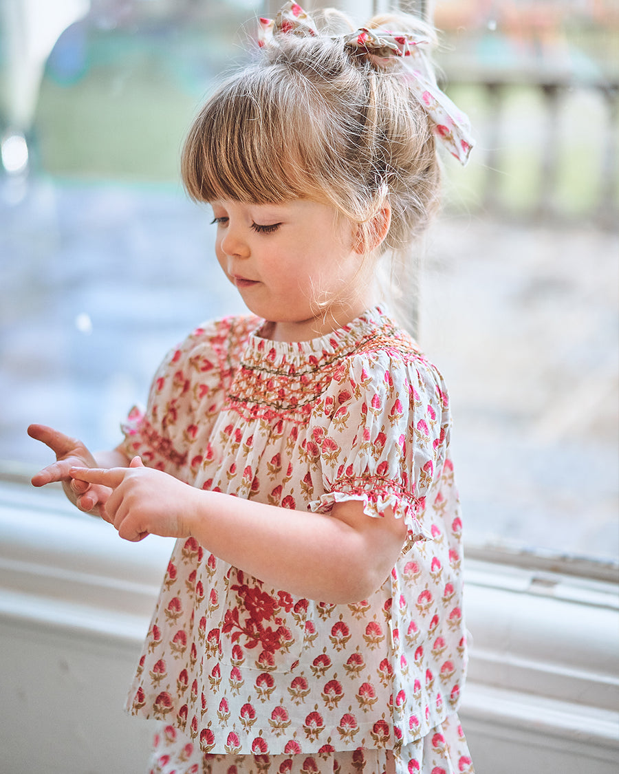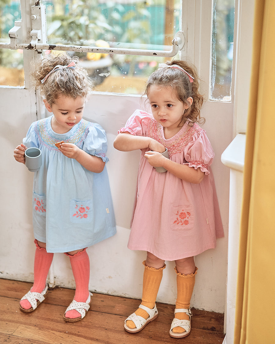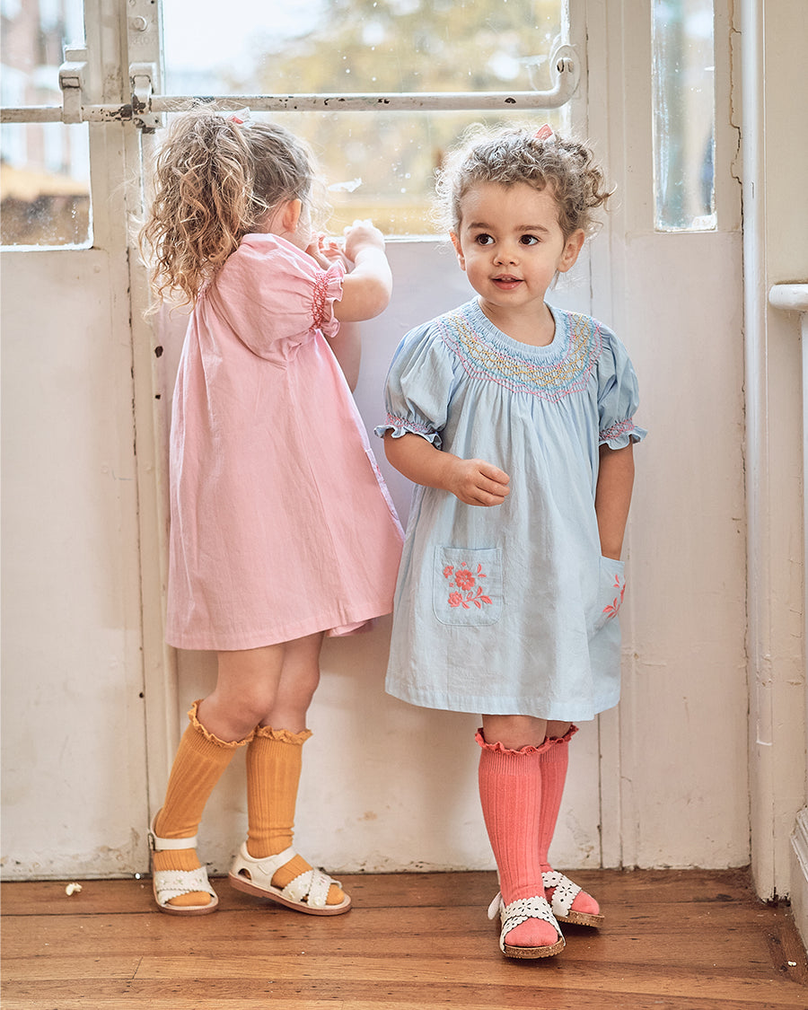Our handmade pieces are lovingly brought to life by our in-house artisans — hand-smocked, hand-embroidered, delicately beaded and finished with beautiful attention to detail. Made in small quantities, each style is a little work of art, designed to be worn, treasured, and passed on.