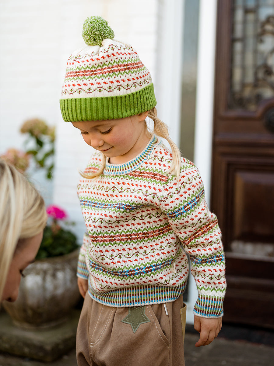 Crafted from the finest natural yarns - plush cashmere, extra-fine merino wool, and soft cotton - our knitwear wraps little ones in breathable warmth and everyday comfort. From timeless silhouettes to our signature Fair Isle patterns, each piece is designed and knitted in-house.