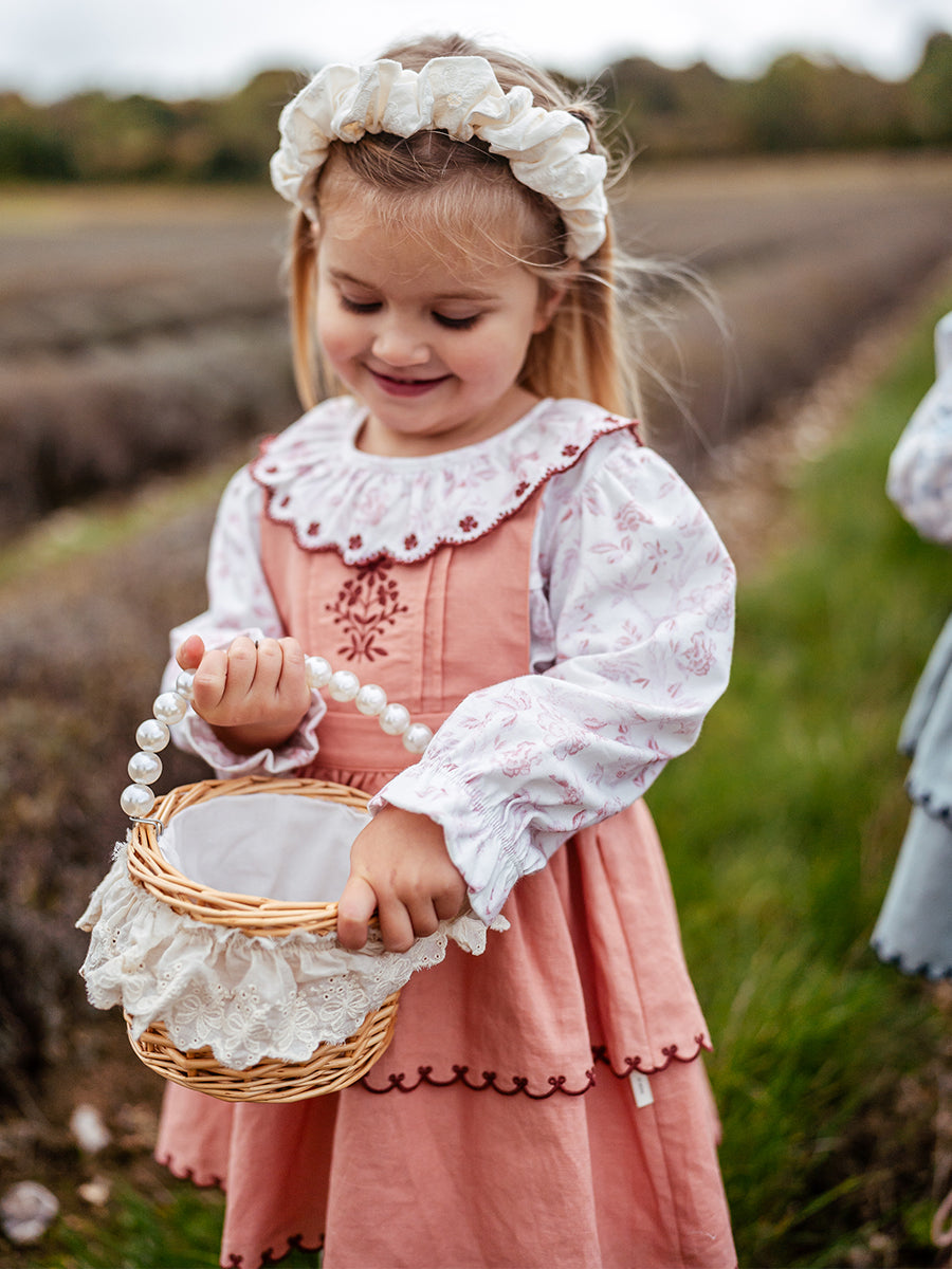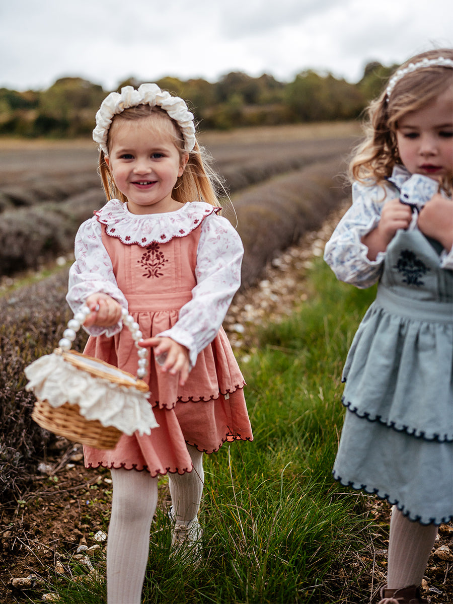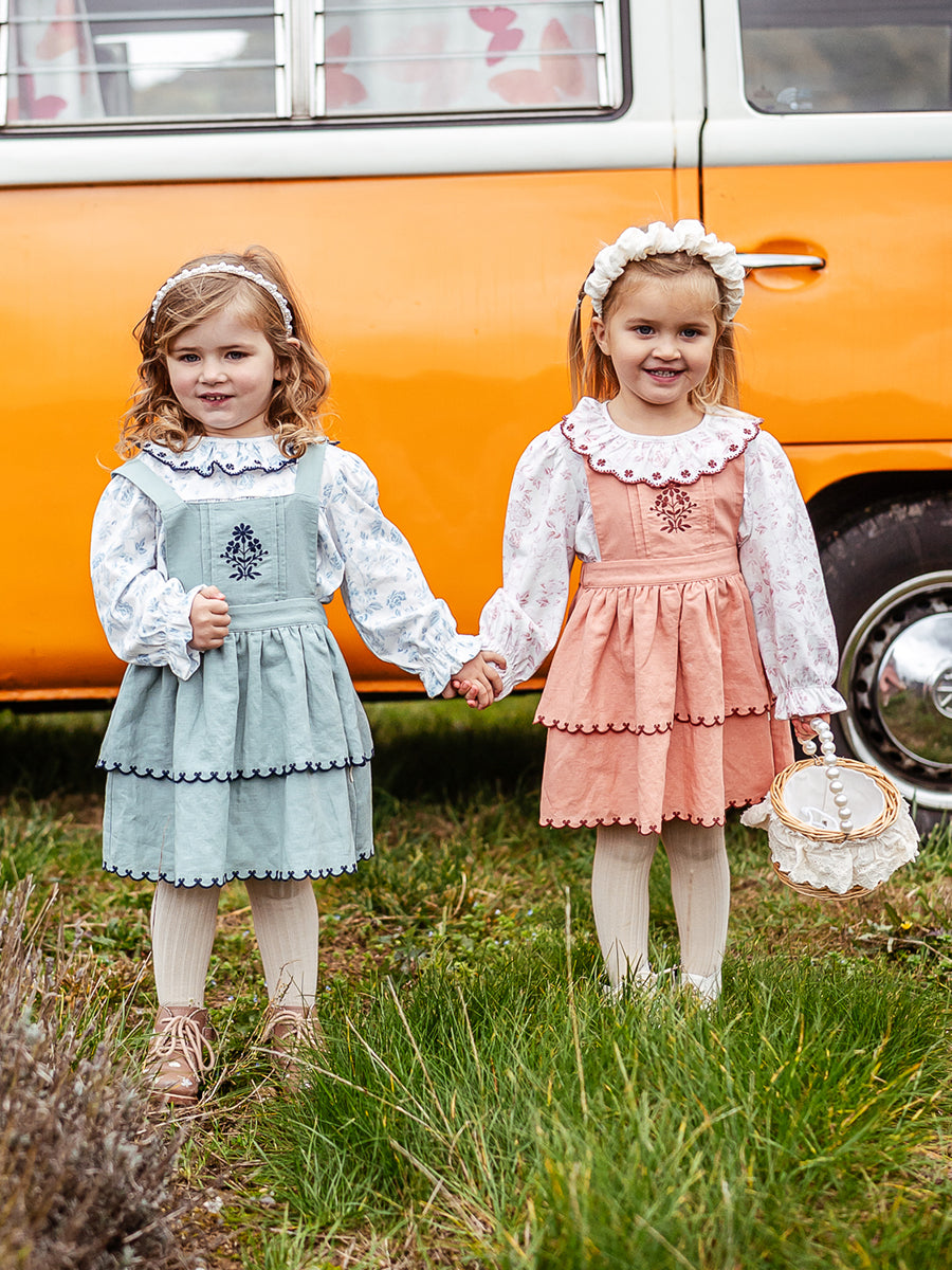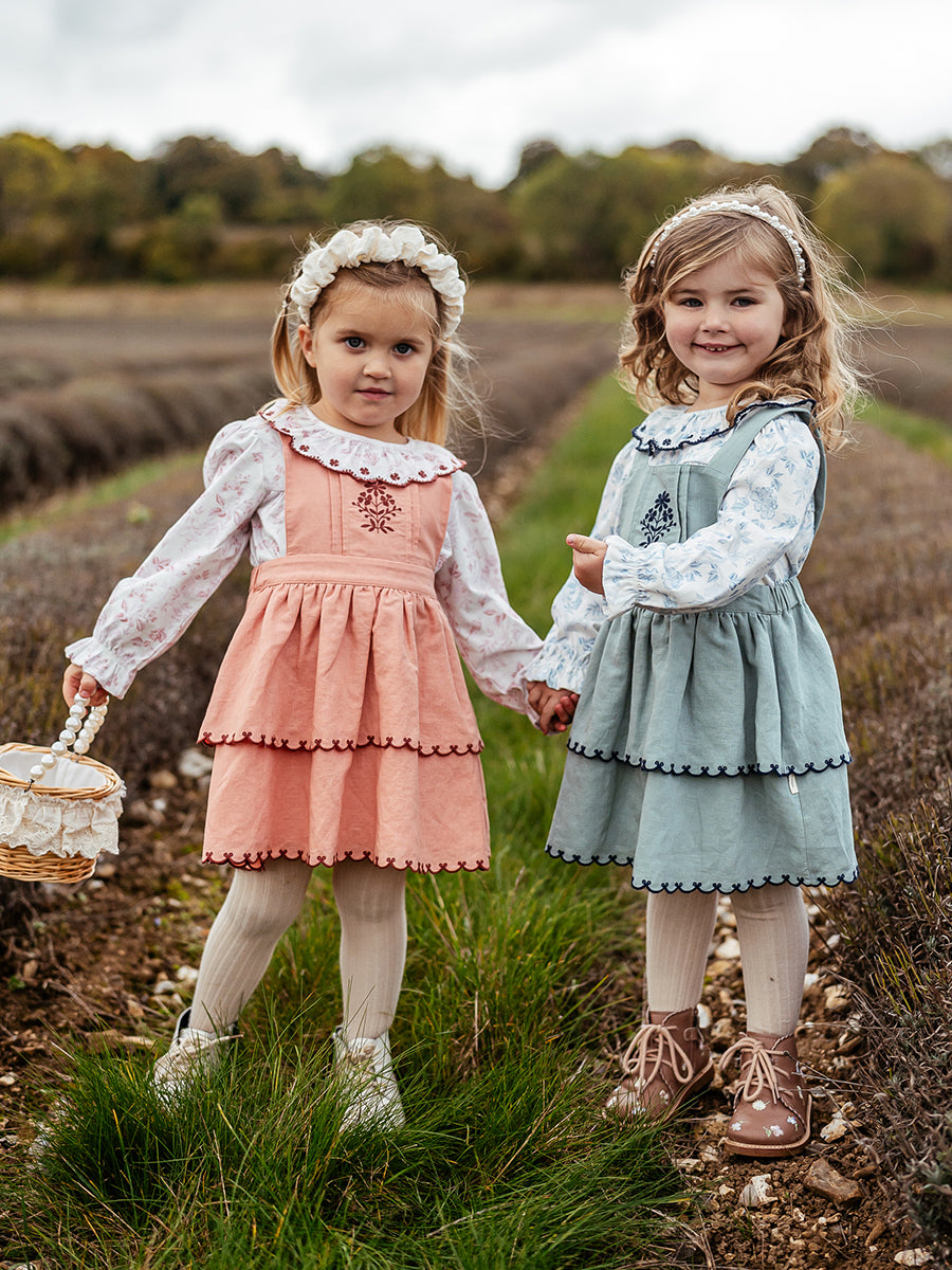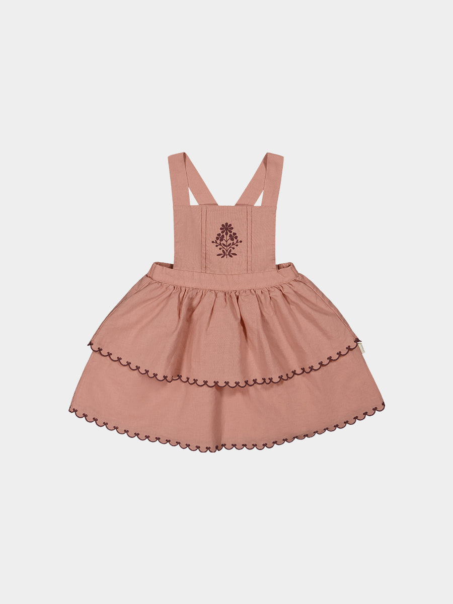 Penzance Embroidered Dungaree Skirt, Grapefruit Orange