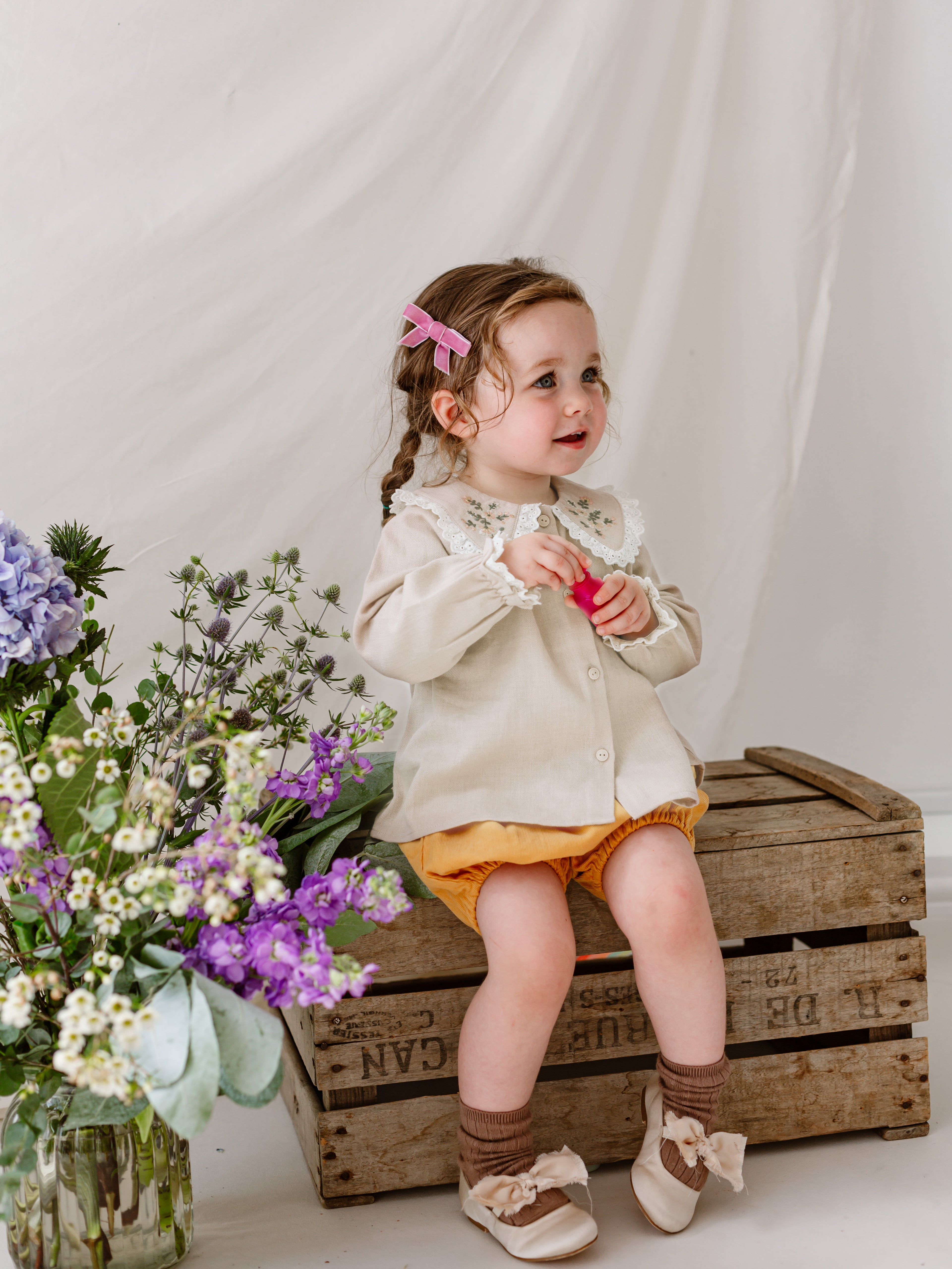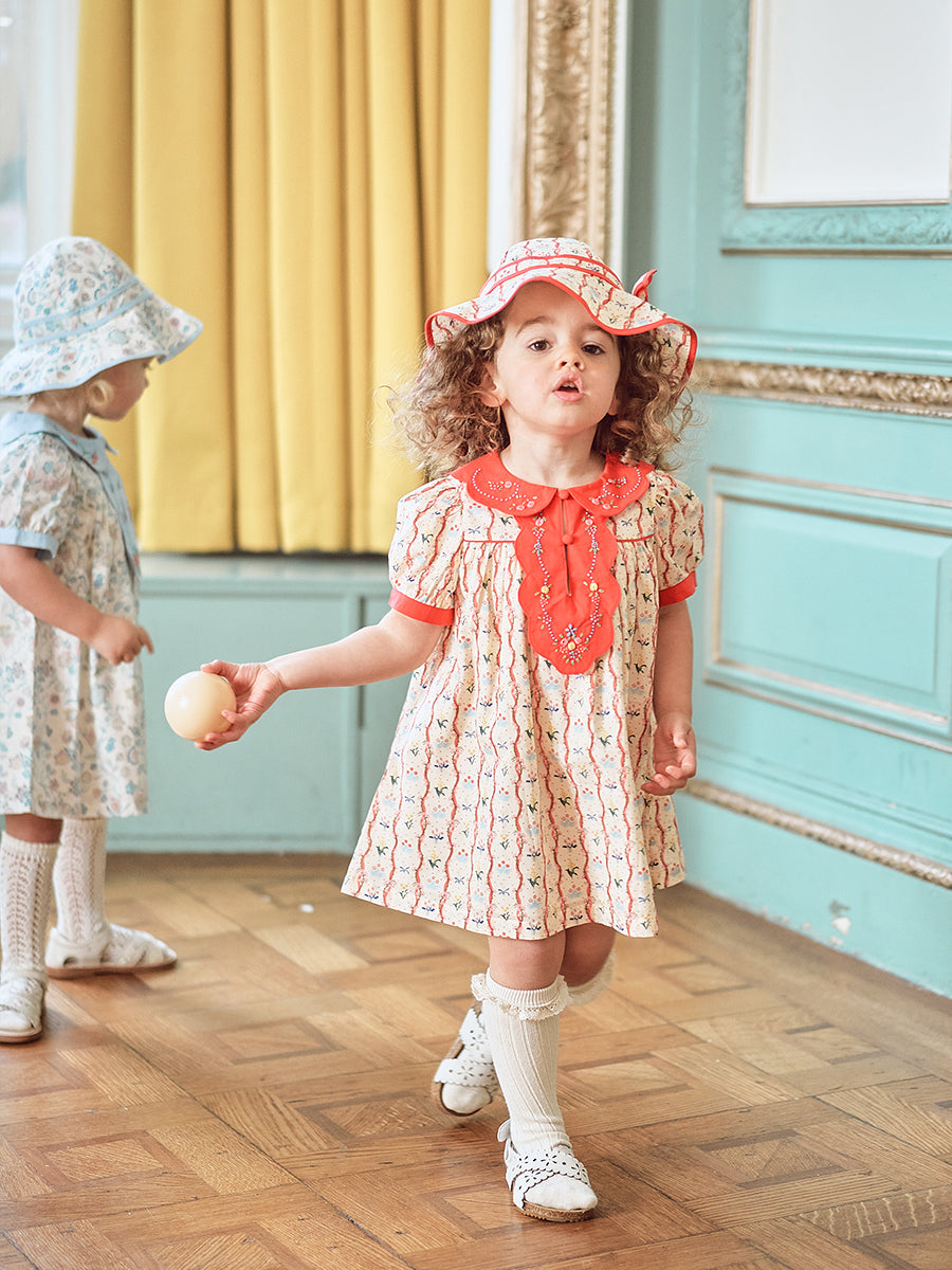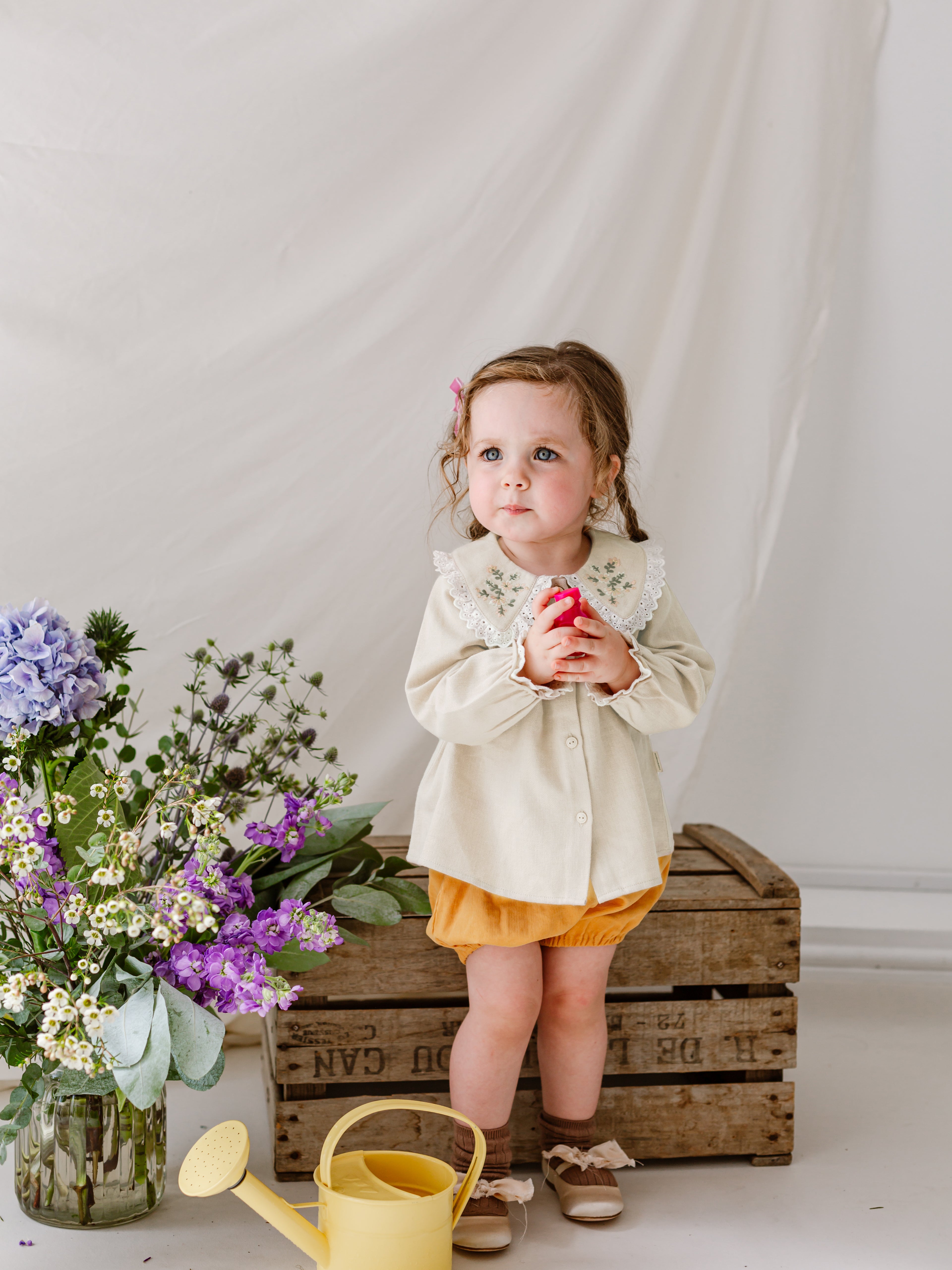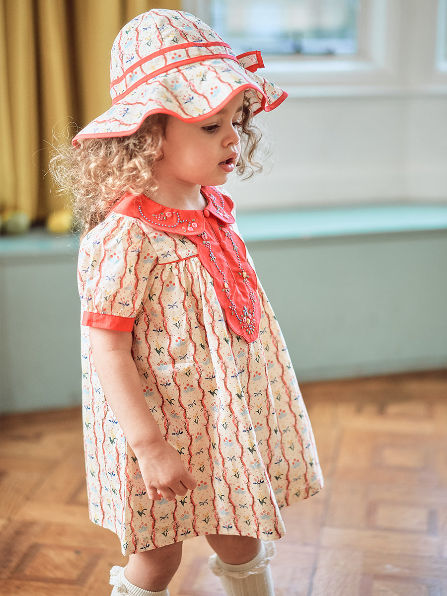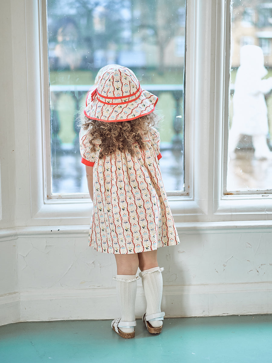 Titled Wildflowers & Wonders, the collection explores the idea of sensory nostalgia - clothing designed to evoke memory through softness and craft. Romantic florals scatter across airy organic cottons, while delicate hand-smocking and embroidery add a quietly luxurious, heirloom touch so clothing feels not only beautiful but also comforting with the familiarity of favourite garments worn through long summer days.