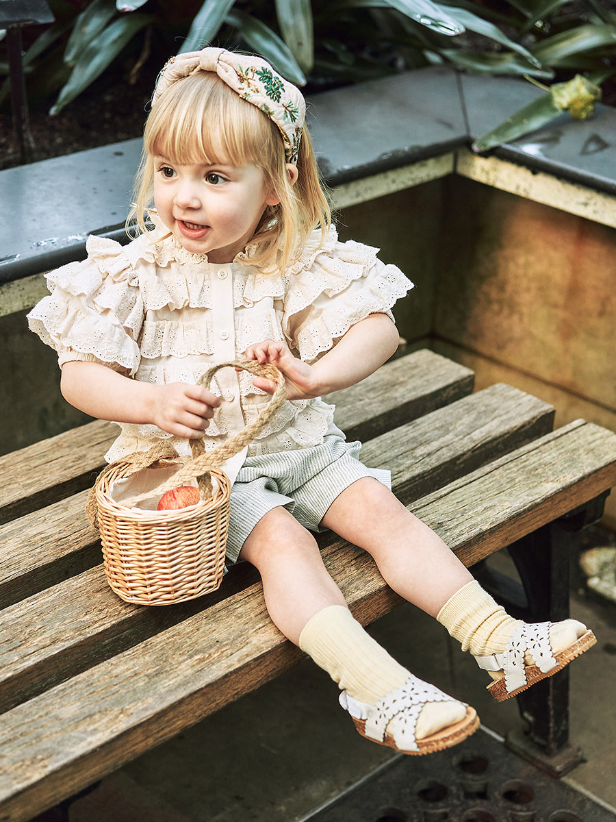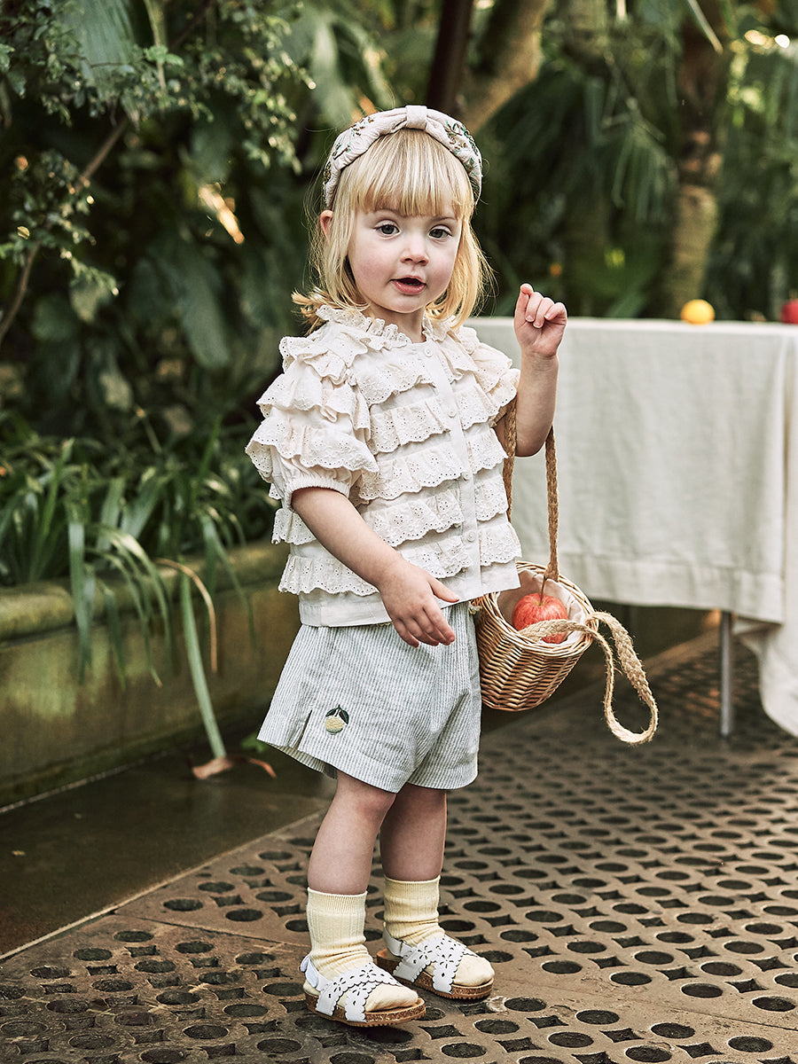Lace Ruffle Organic Cotton Leggings, Milk White