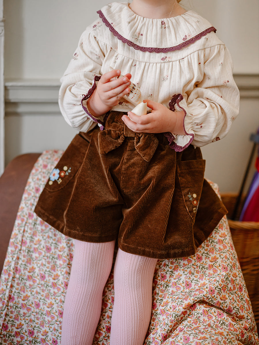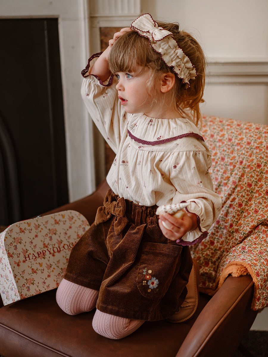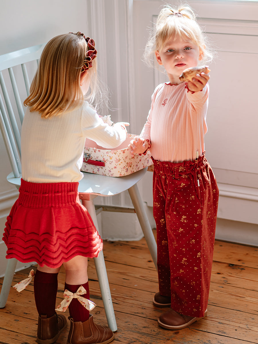 Sally Corduroy Trousers, Wildflower Polka, Burgundy