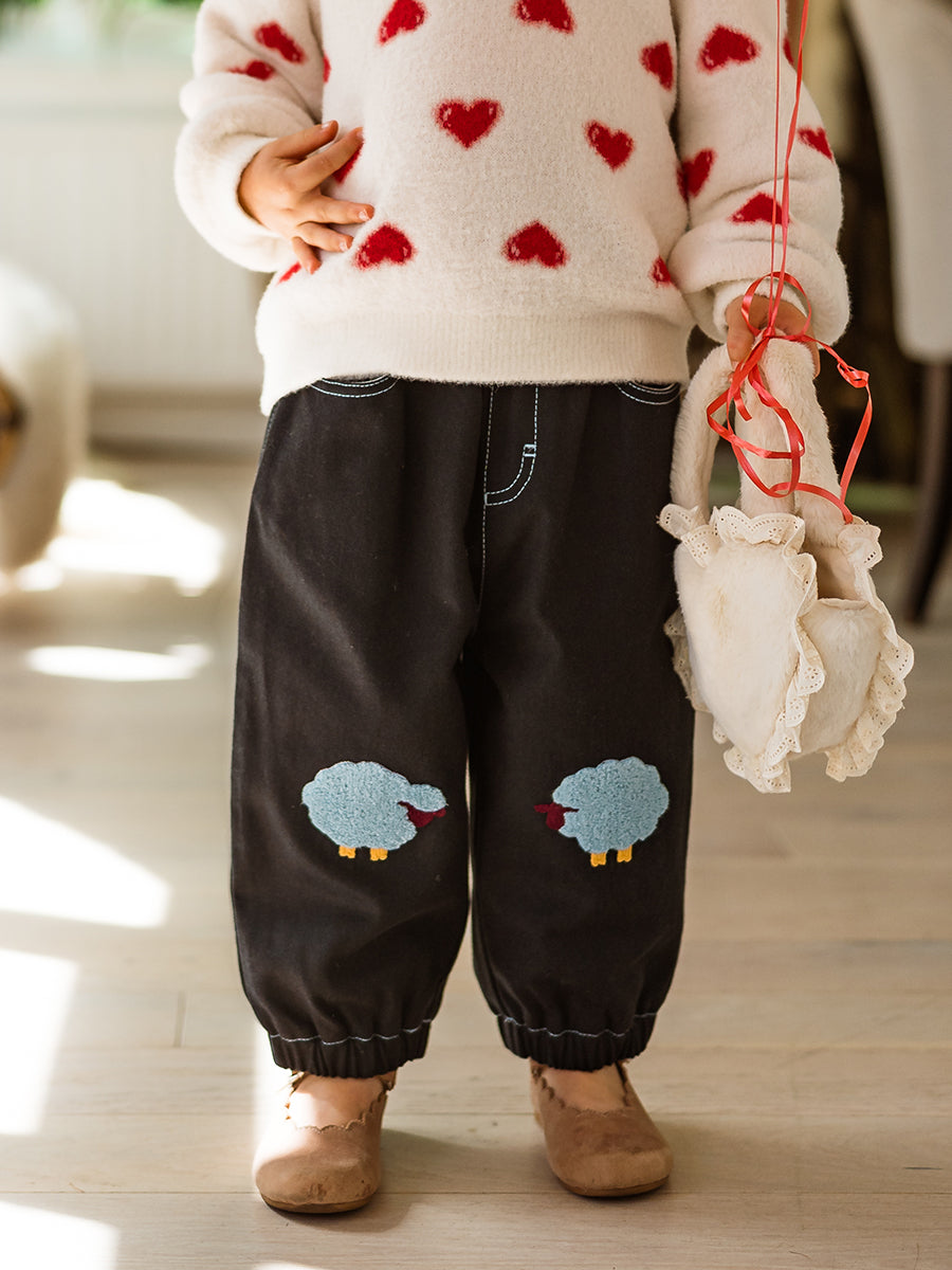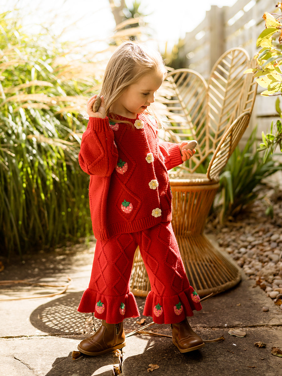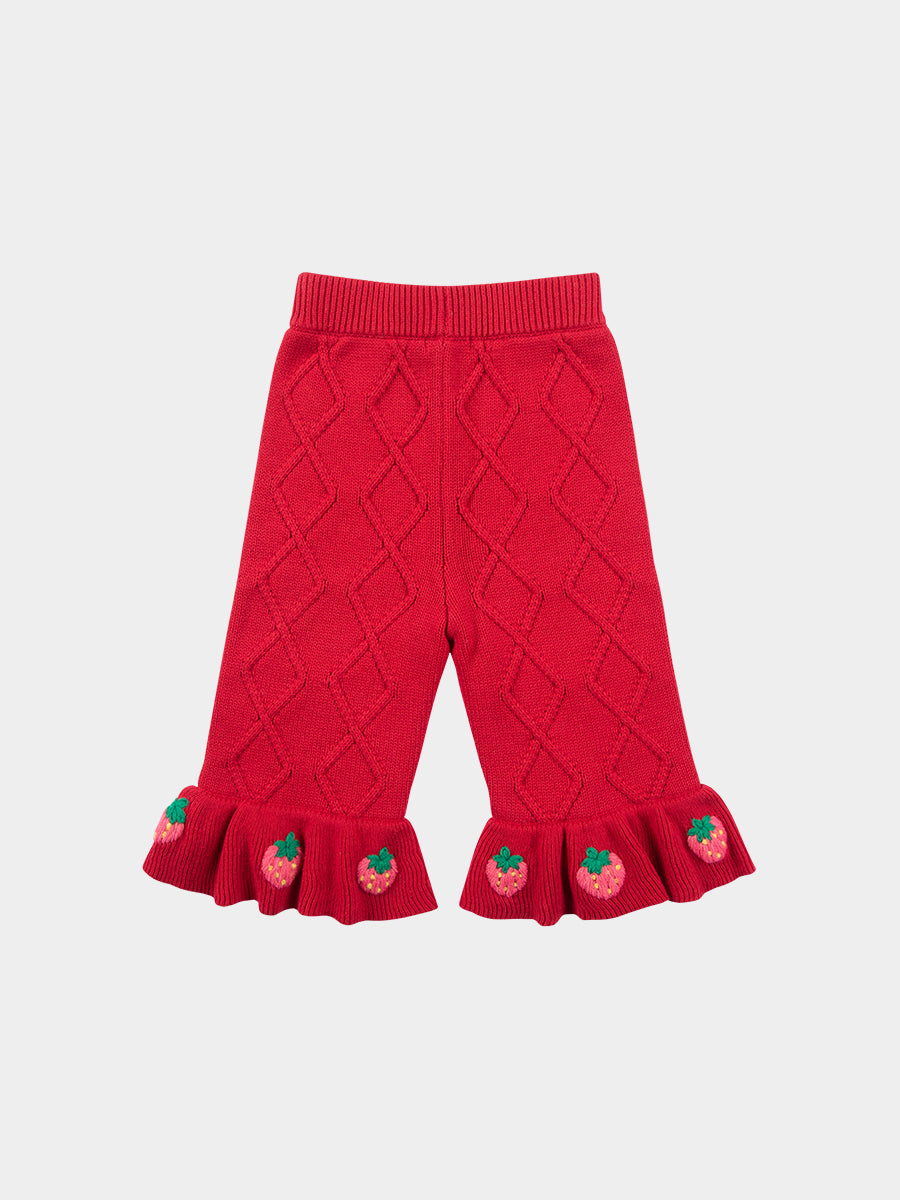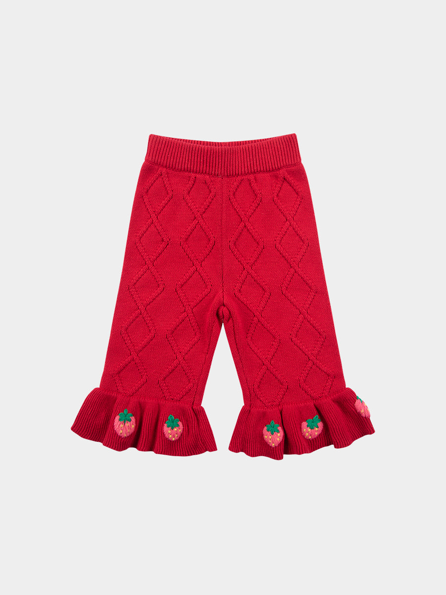 Strawberry Hand-Embroidered Knitted Pants, Royal Red