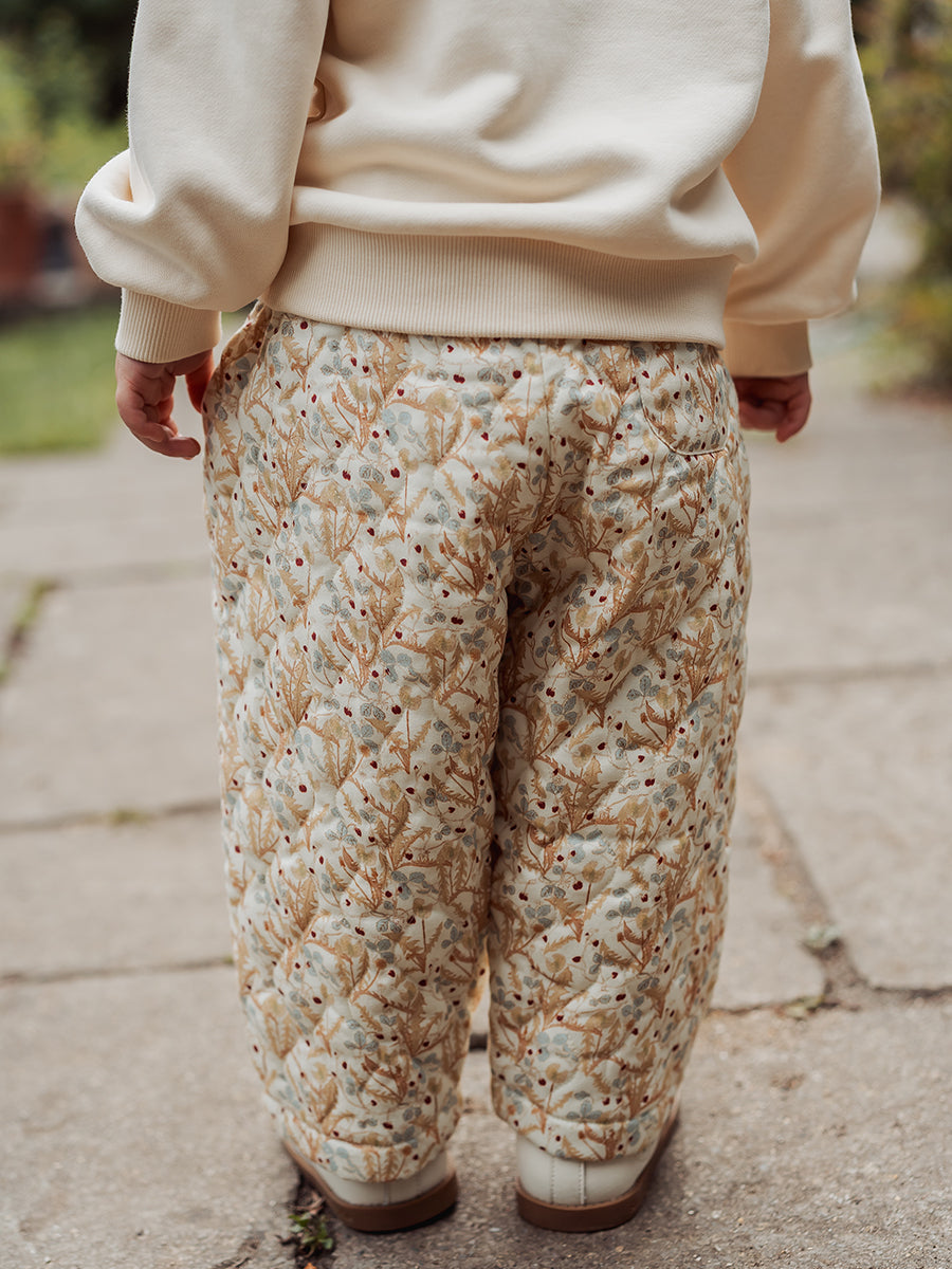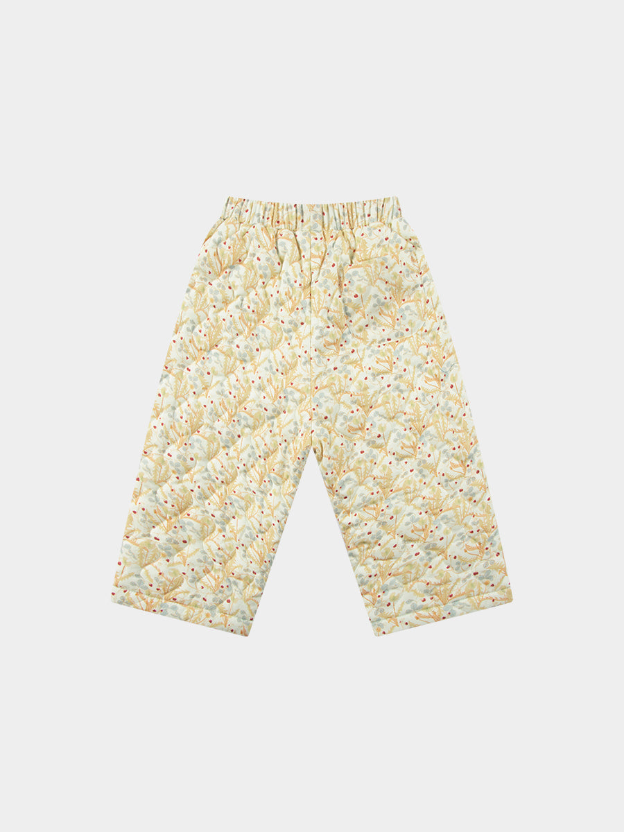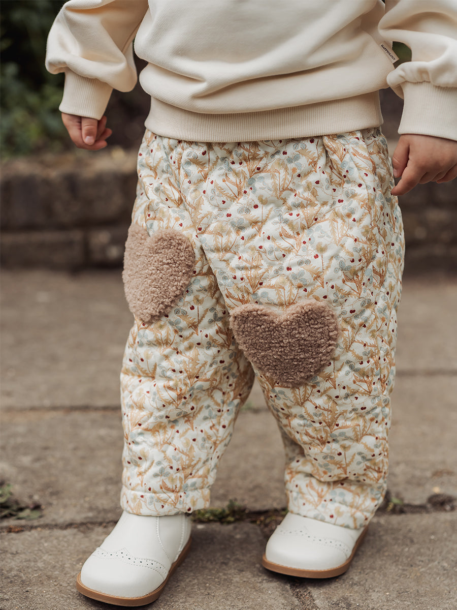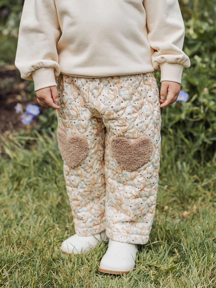 Camila Quilted Trousers, Strawberry Flower Field, White