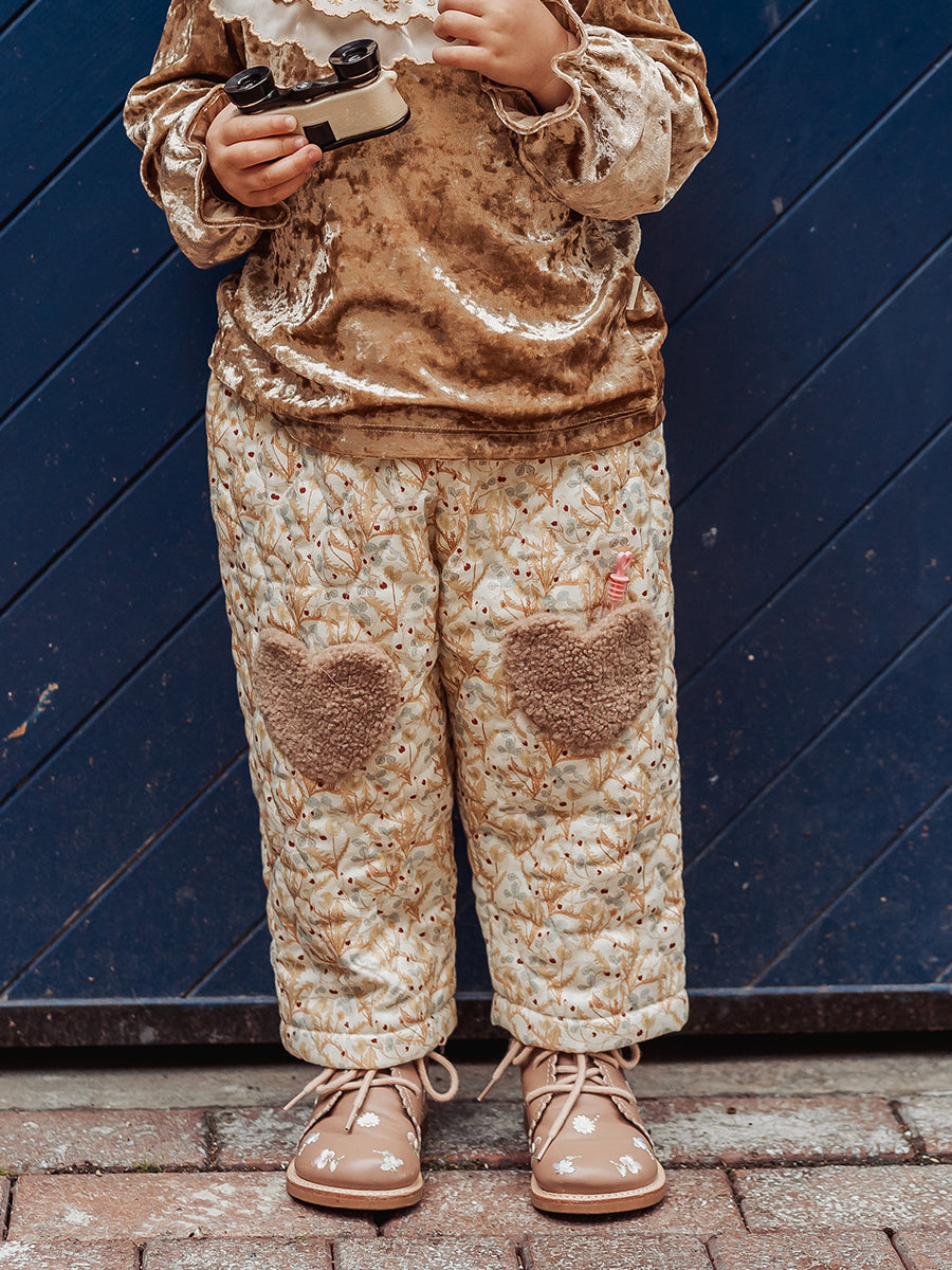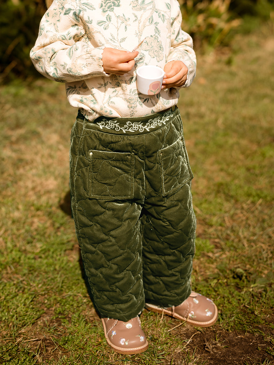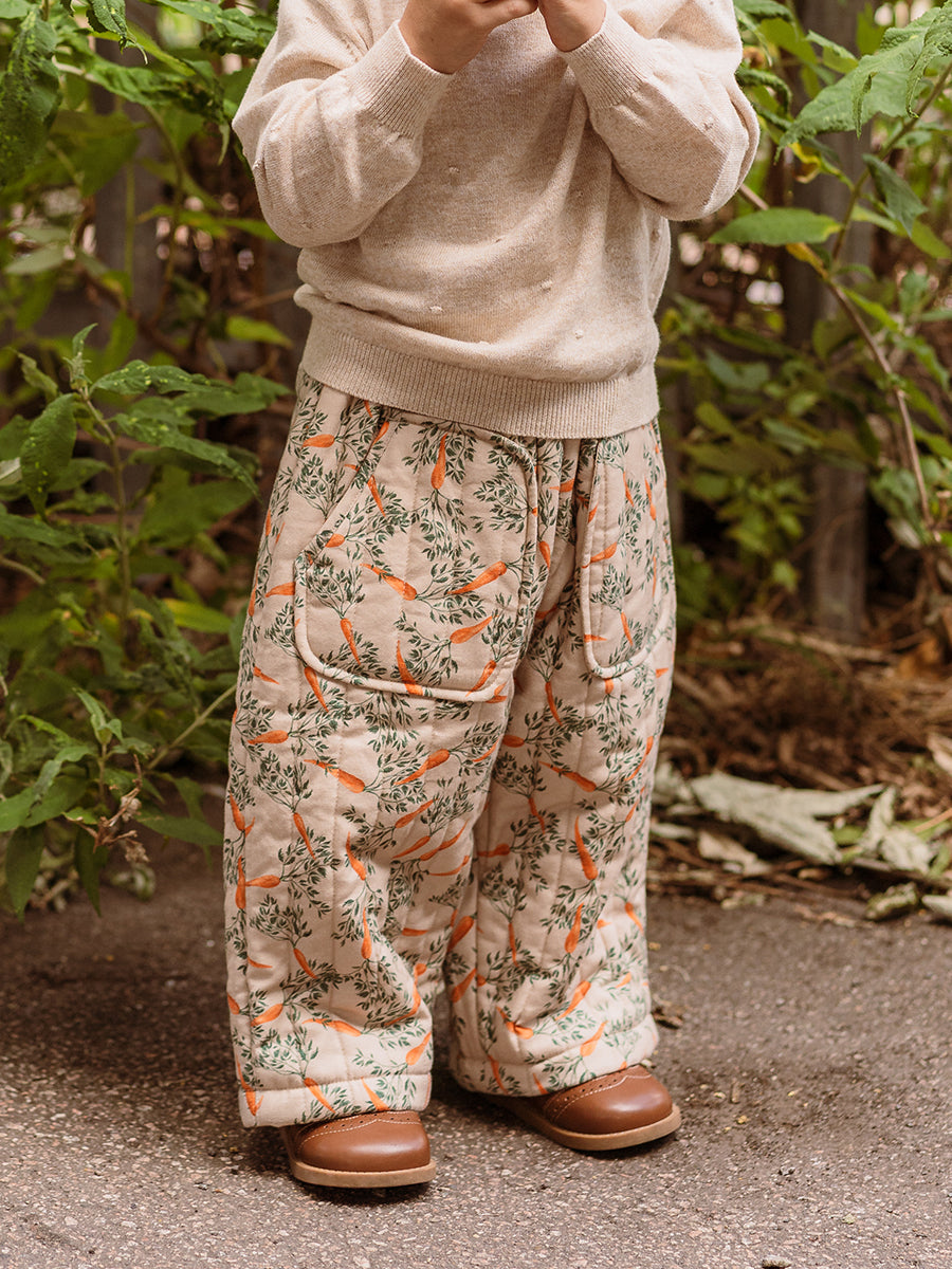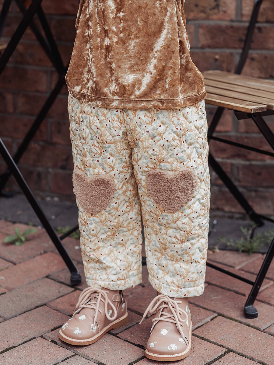 Camila Quilted Trousers, Strawberry Flower Field, White