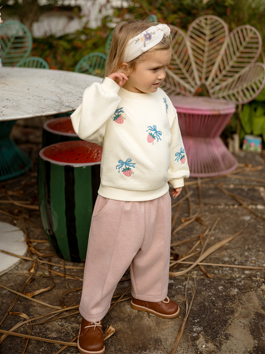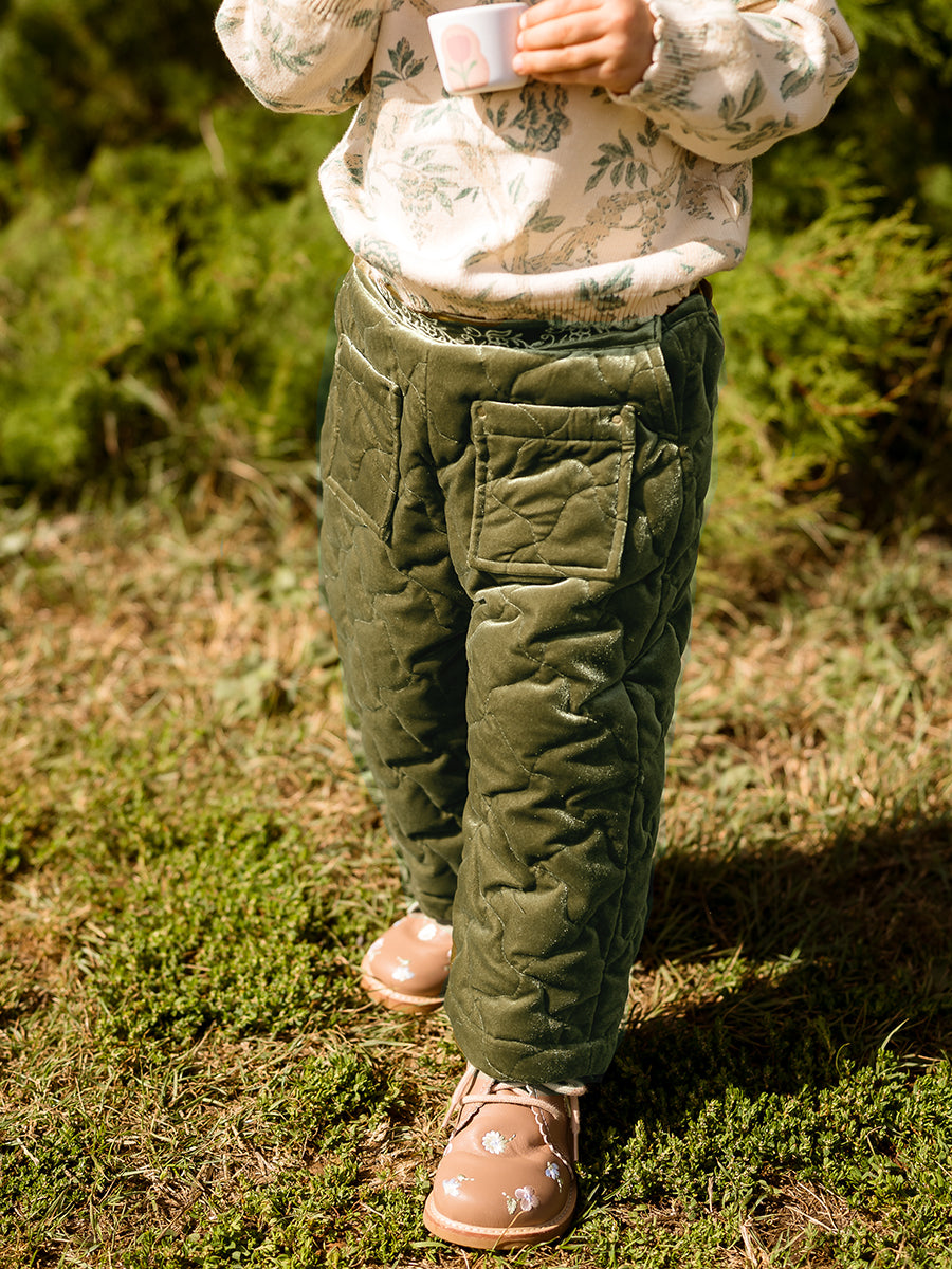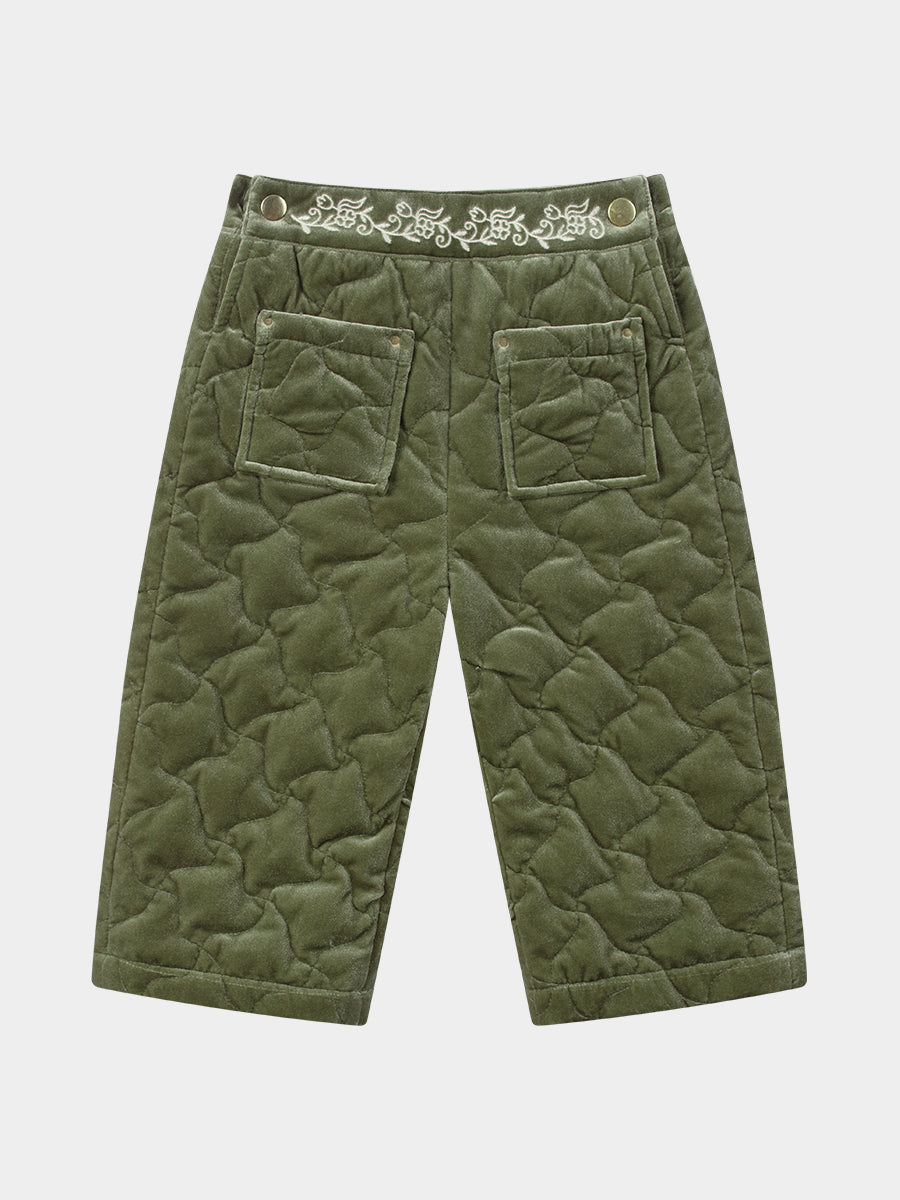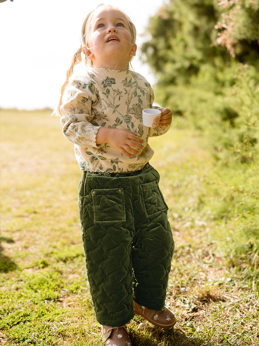 Camila Quilted Trousers, Strawberry Flower Field, White